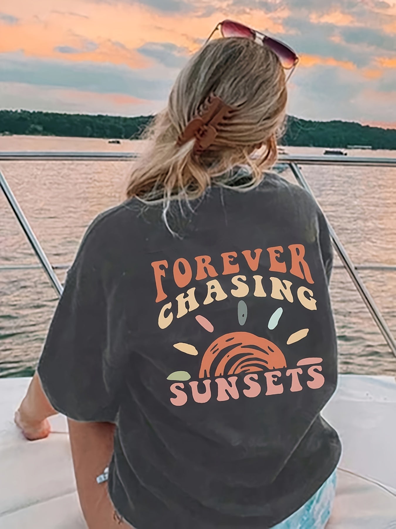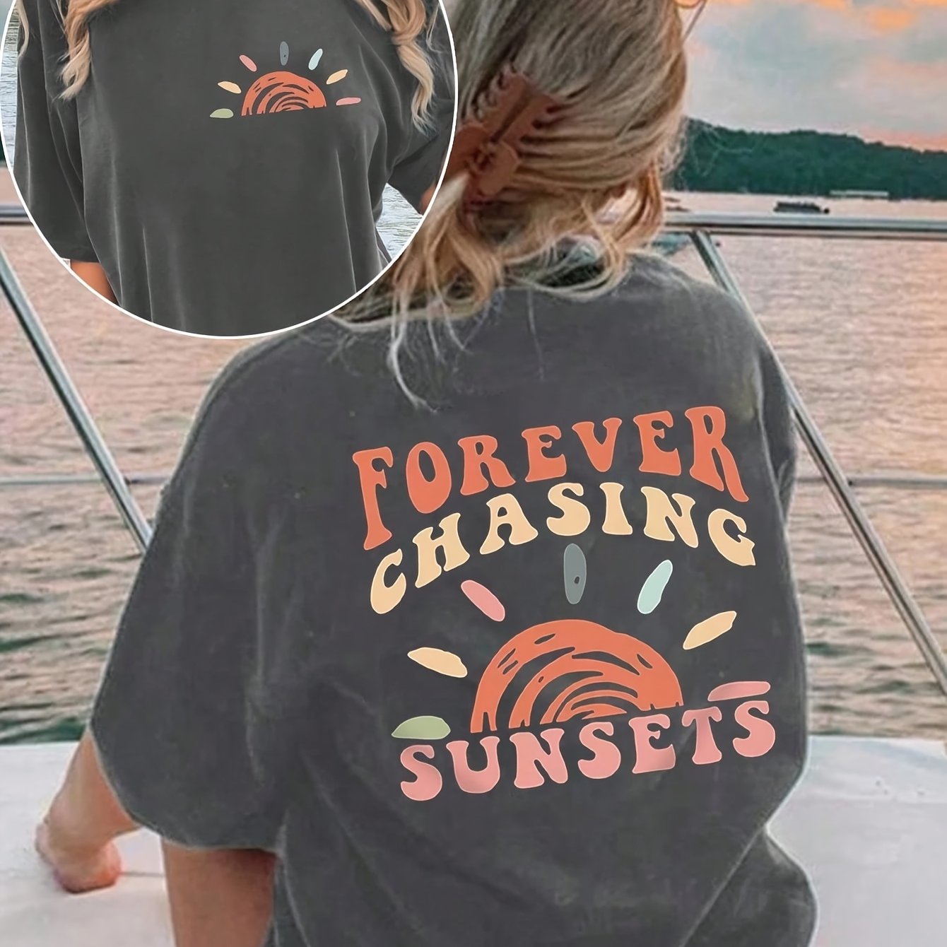 Ta lekka koszulka inspirowana zachodami słońca otula skórę miękkim i oddychającym materiałem. Jej swobodny krój sprawia, że idealnie pasuje zarówno na spacer po plaży, jak i do codziennych stylizacji. Nadruk z palmami wprowadza wakacyjny nastrój i poprawia humor przy każdym założeniu.