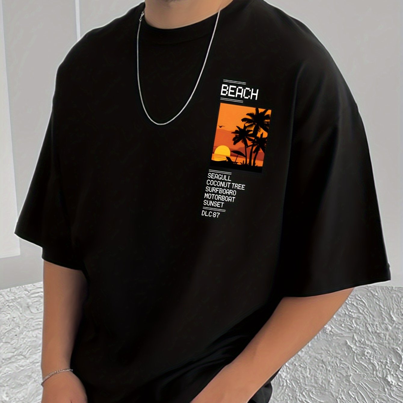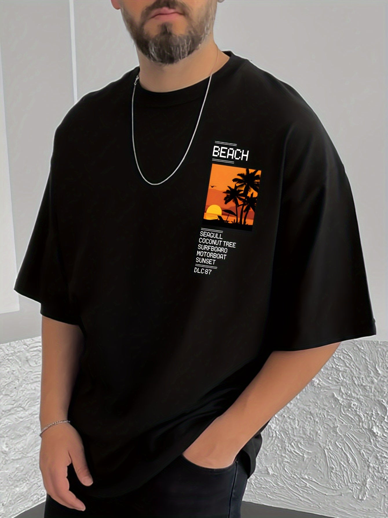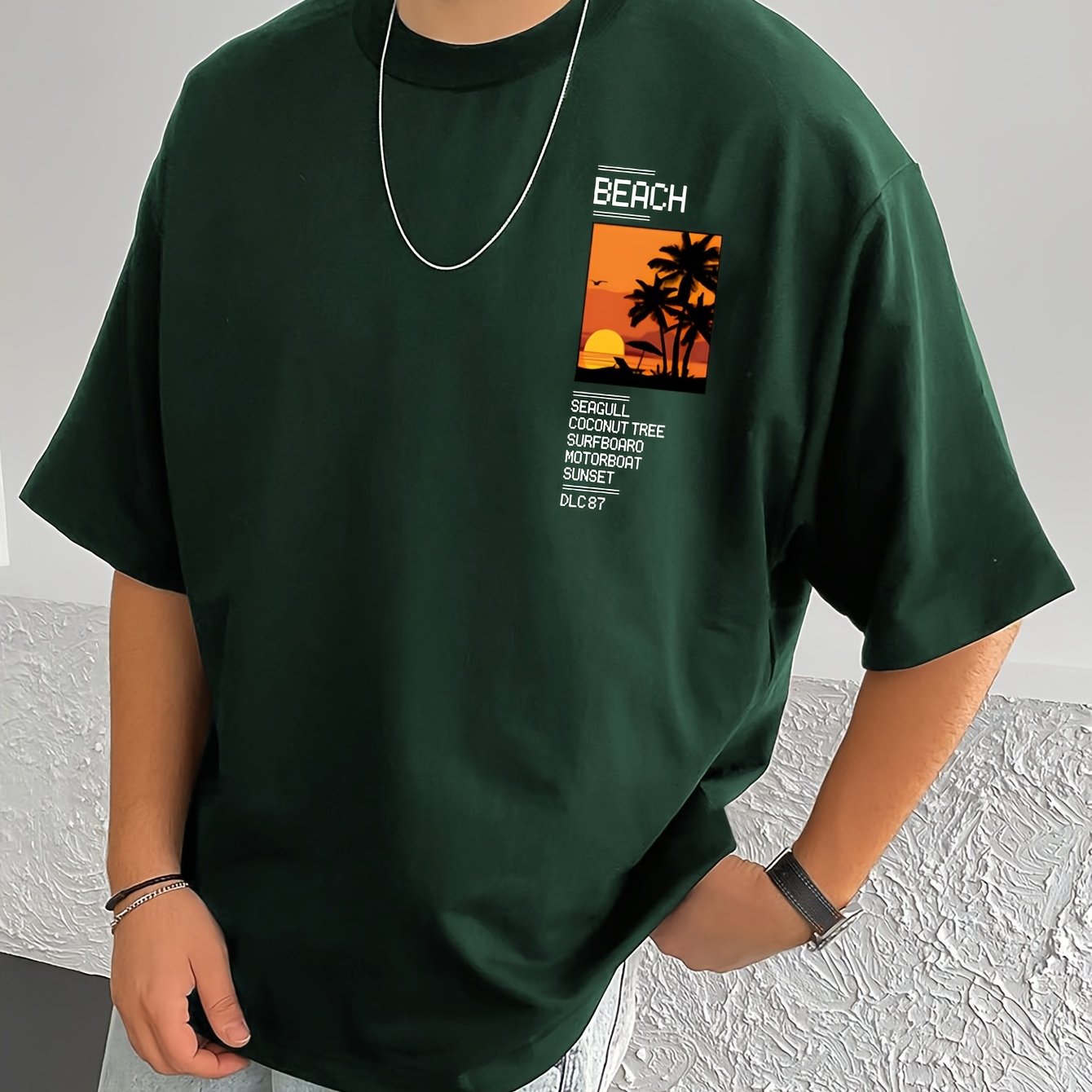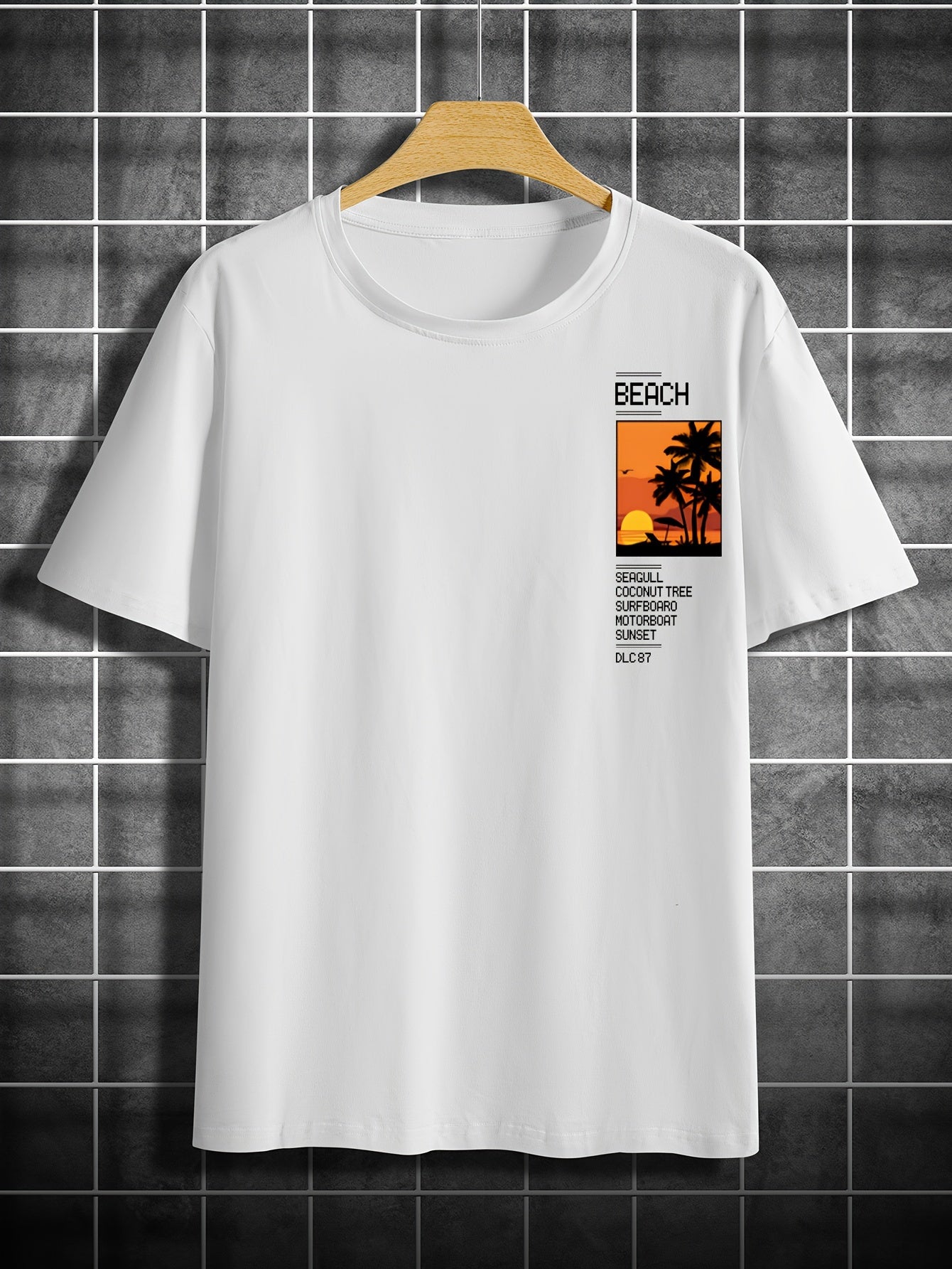 Luźna koszulka męska z nadrukiem BEACH to letnia klasyka. Okrągły dekolt i krótki rękaw gwarantują komfort, a minimalistyczny nadruk podkreśla wakacyjny styl. Idealna na plażę i wyjazdy weekendowe.