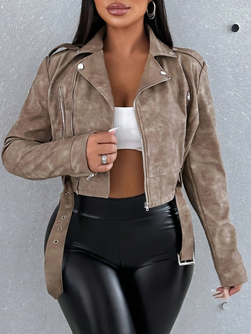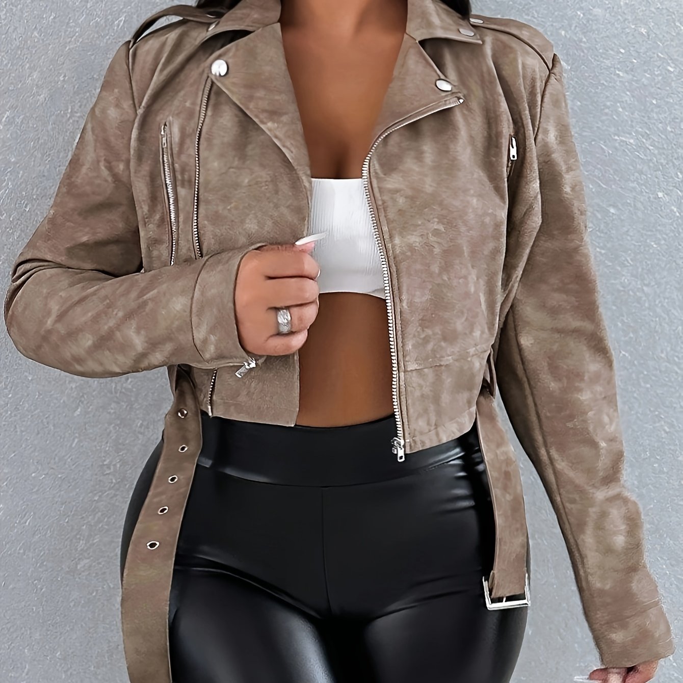 Casualowa kurtka damska z zamkiem i elastycznym materiałem, idealna na wiosnę i jesień. Wysoki stan i styl bliskowschodni nadają jej wyjątkowego wyglądu. Świetna do codziennej mody miejskiej.