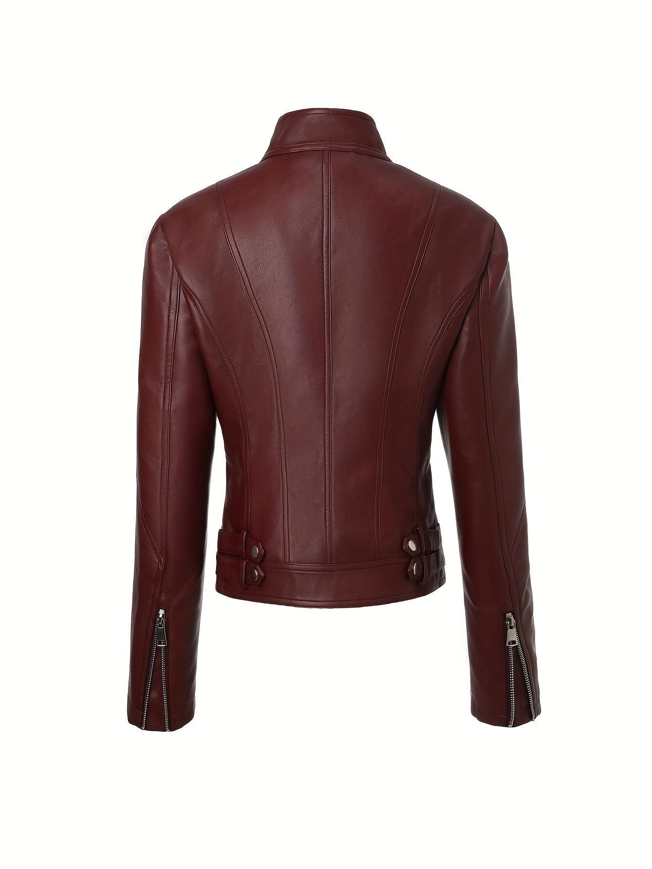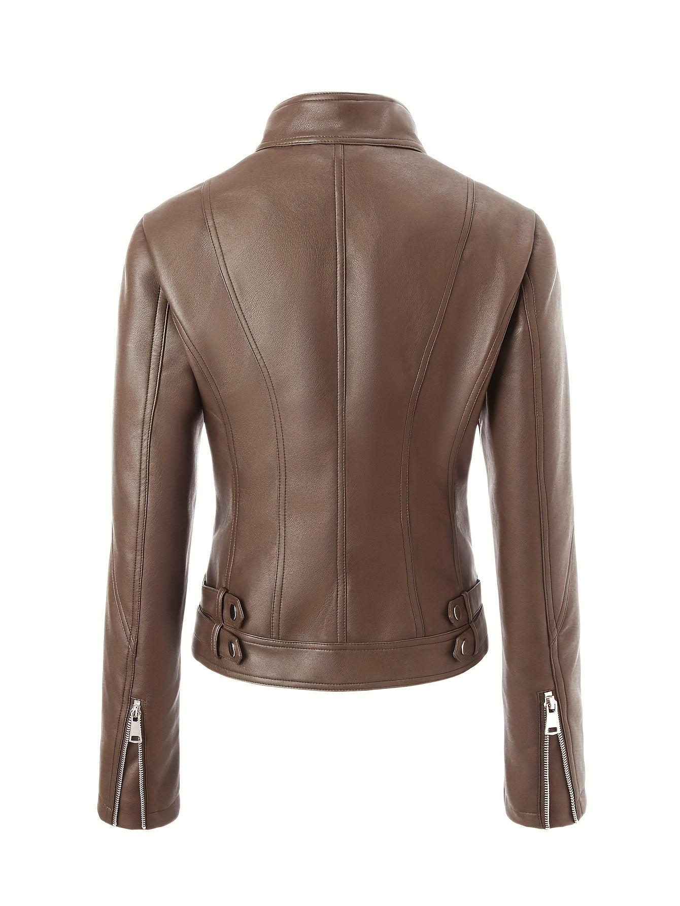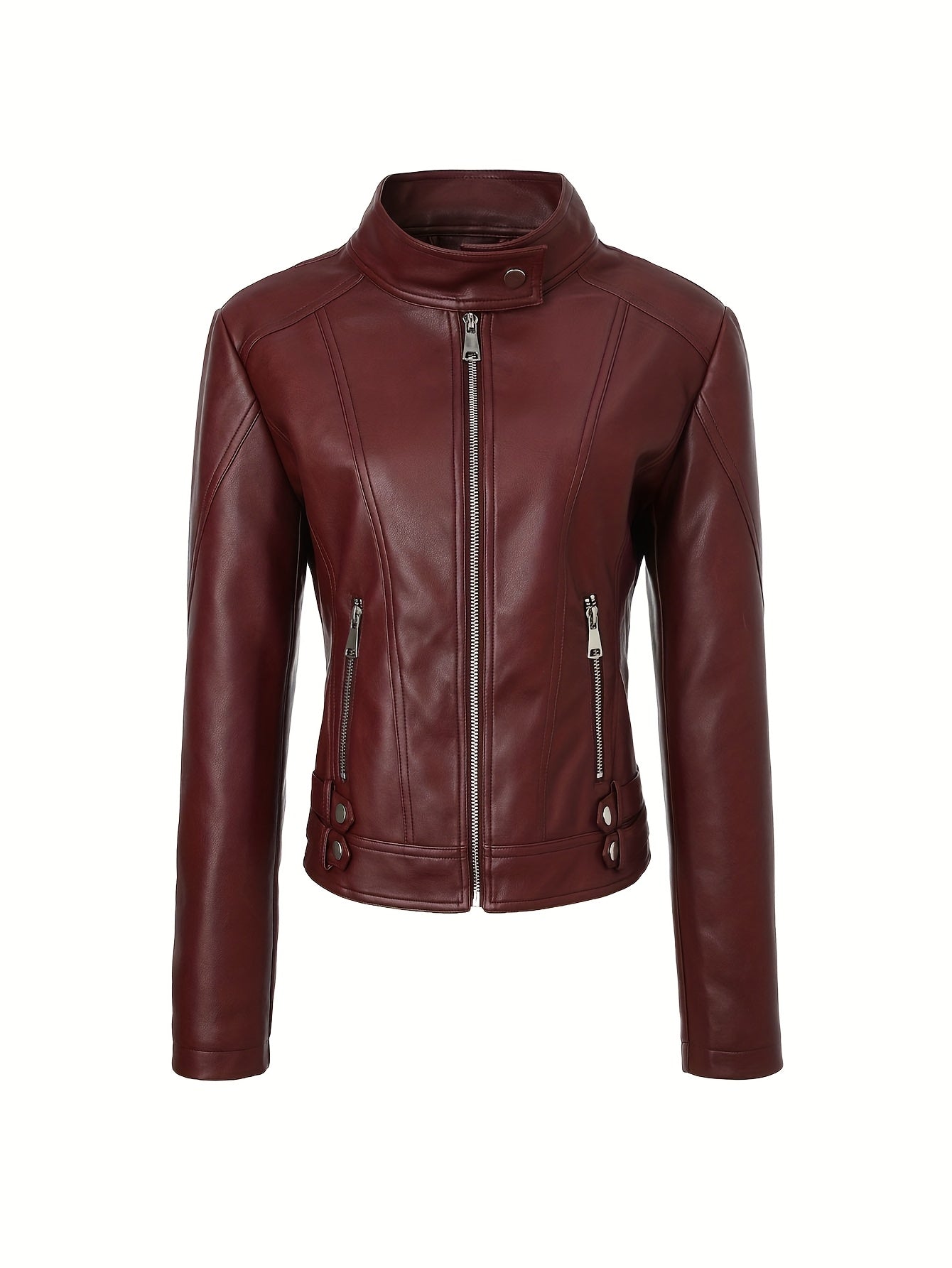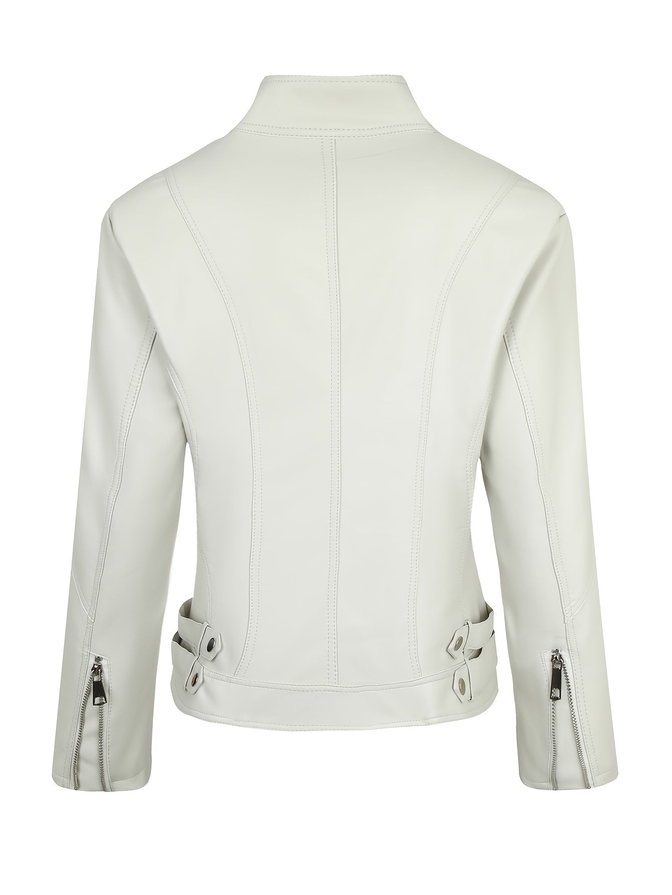 Czarna kurtka motocyklowa slim-fit z metalicznymi nitkami i stojącym kołnierzem. Łączy casualowy luz z elegancją, będąc idealną propozycją na każdą porę roku. Zamek i guziki dodają funkcjonalności.
