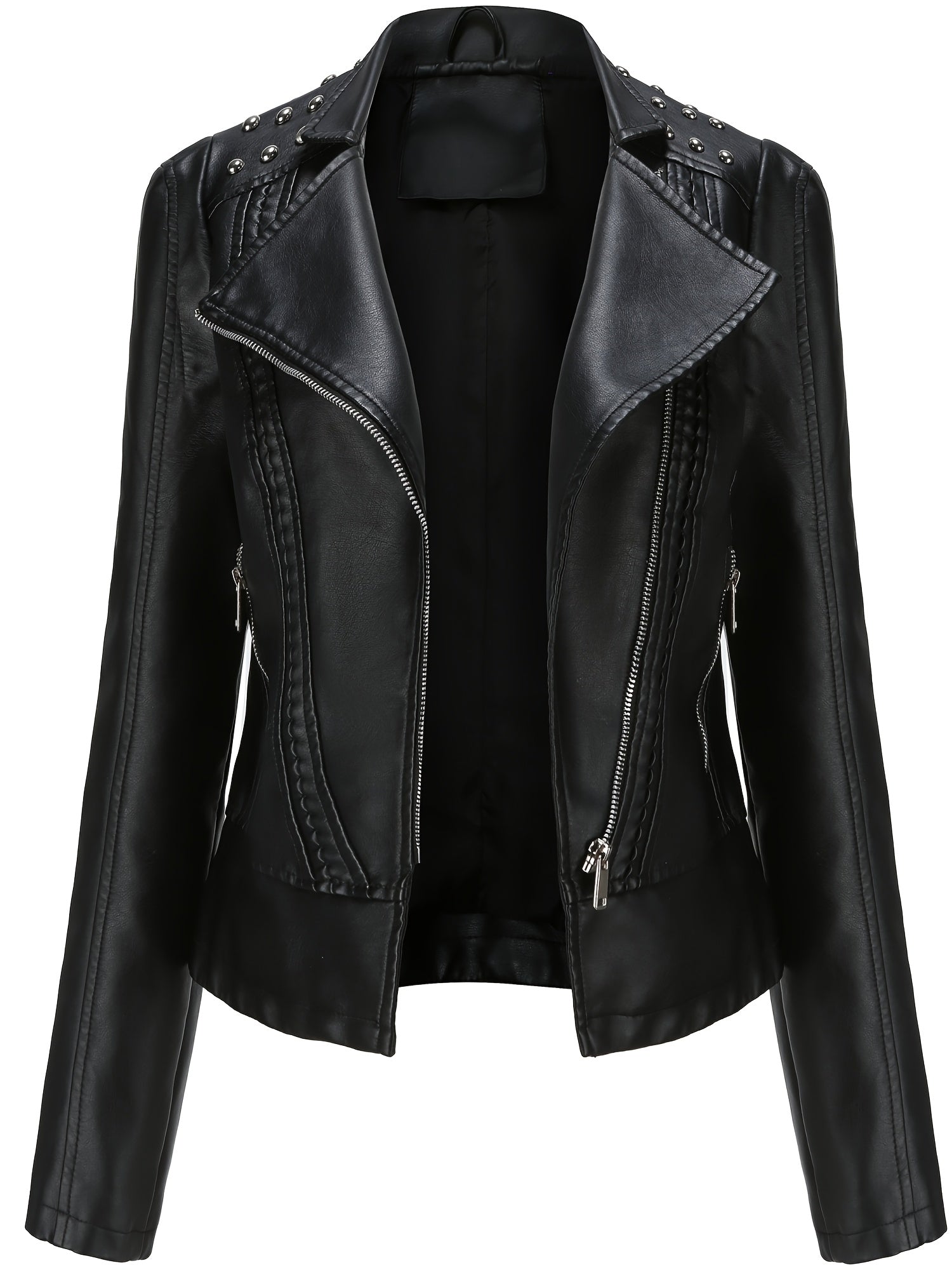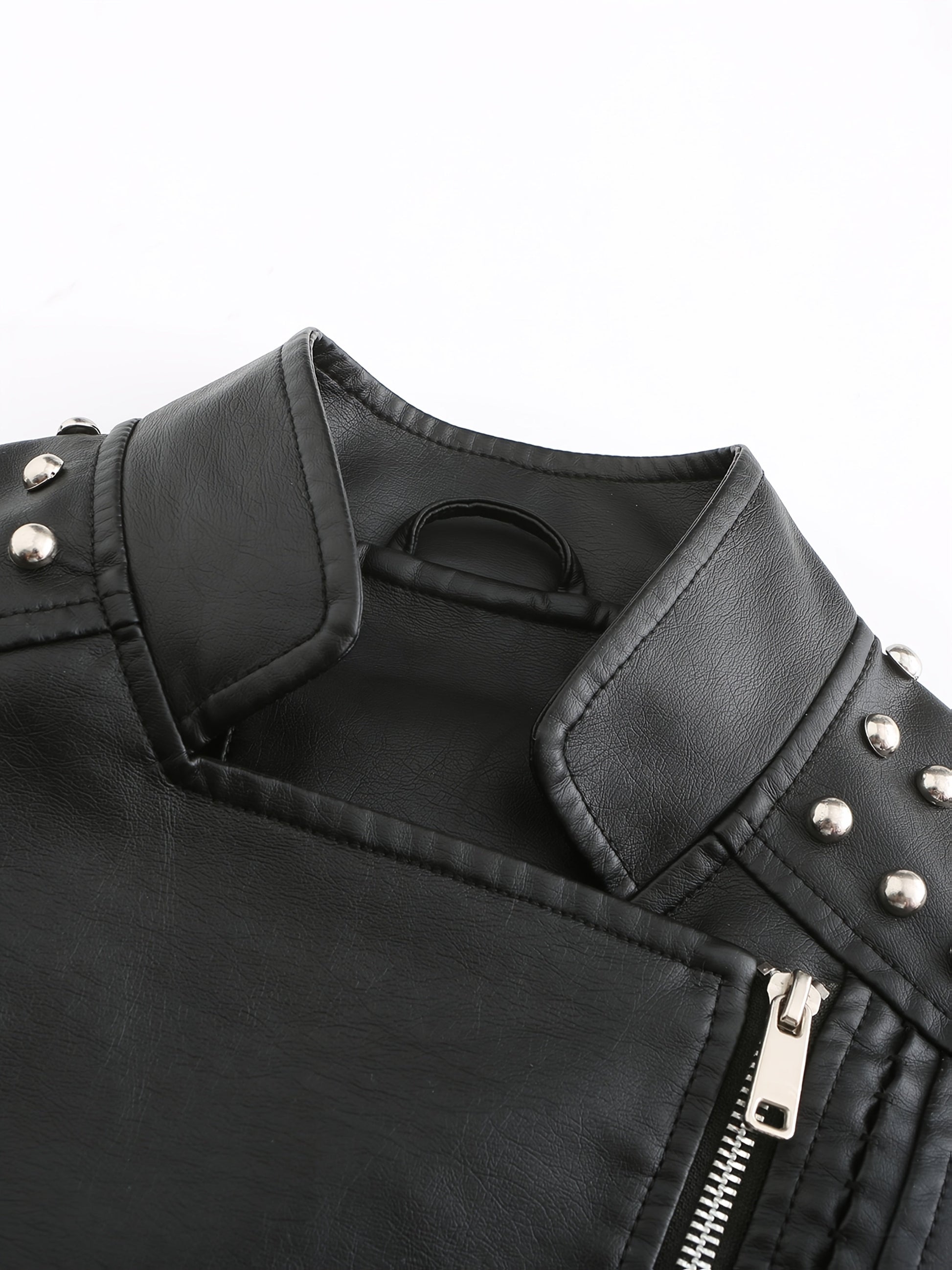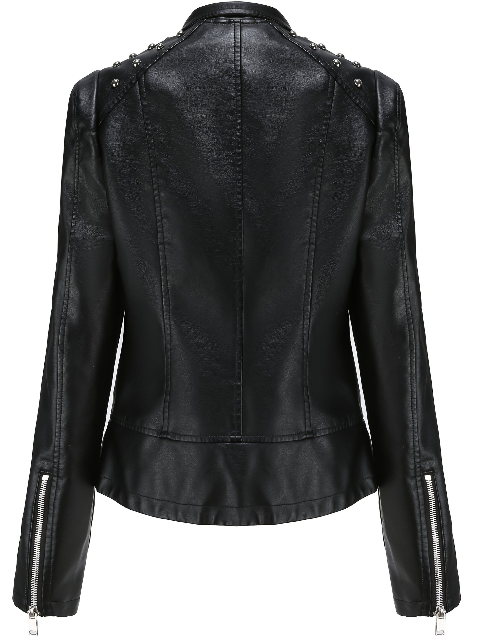 Kurtka motocyklowa retro zdobiona koralikami w jednolitym kolorze. Dopasowany fason z zamkami i kieszeniami podkreśla sylwetkę. Doskonała na wiosnę i jesień w casualowych stylizacjach.