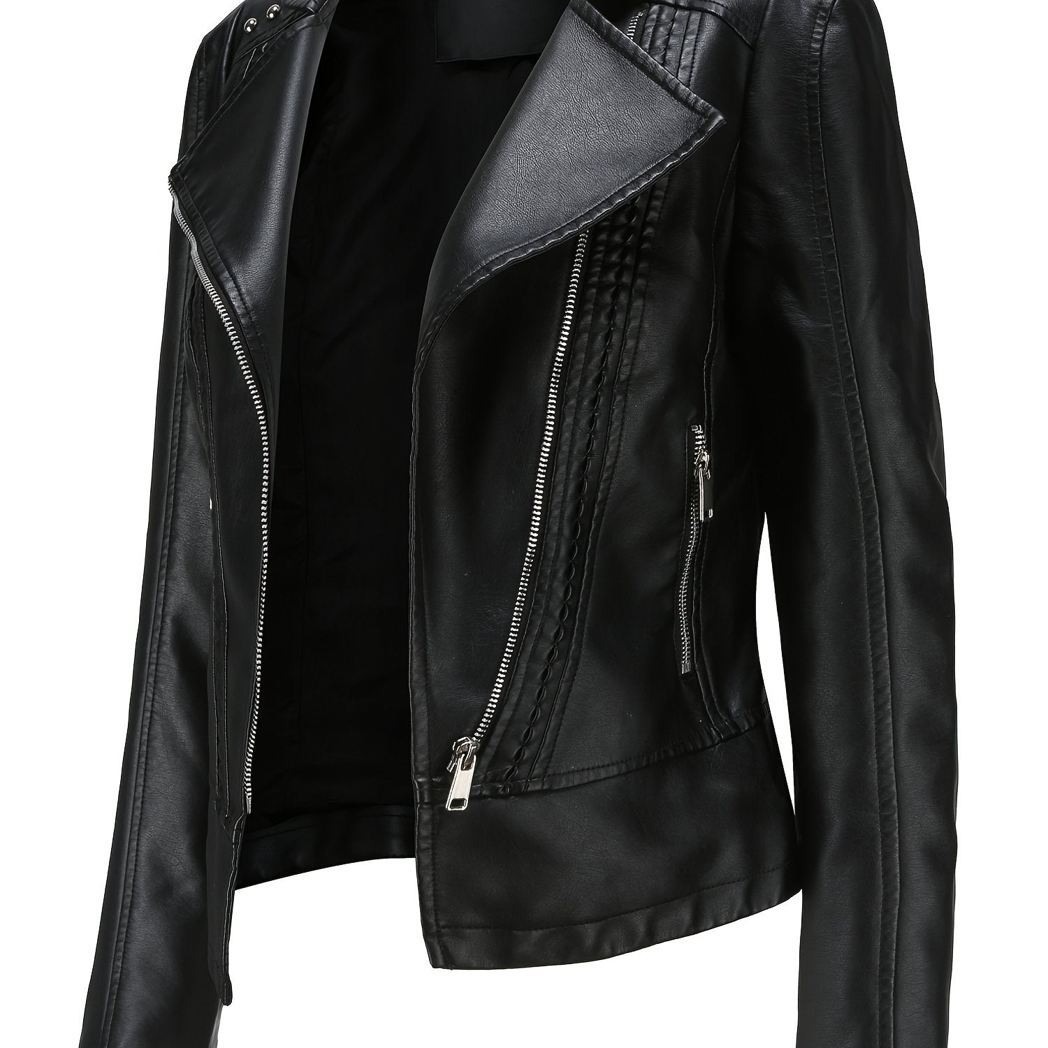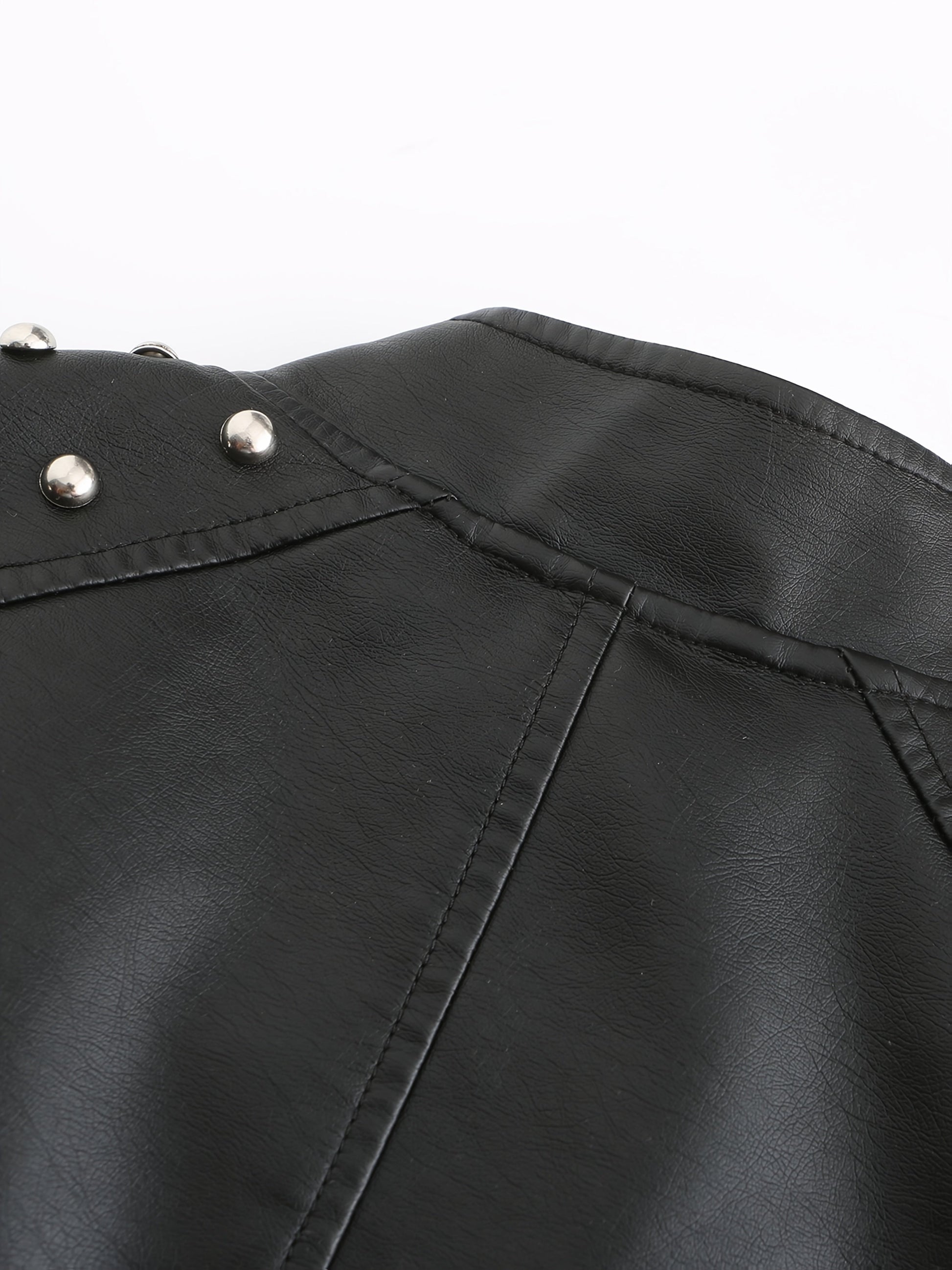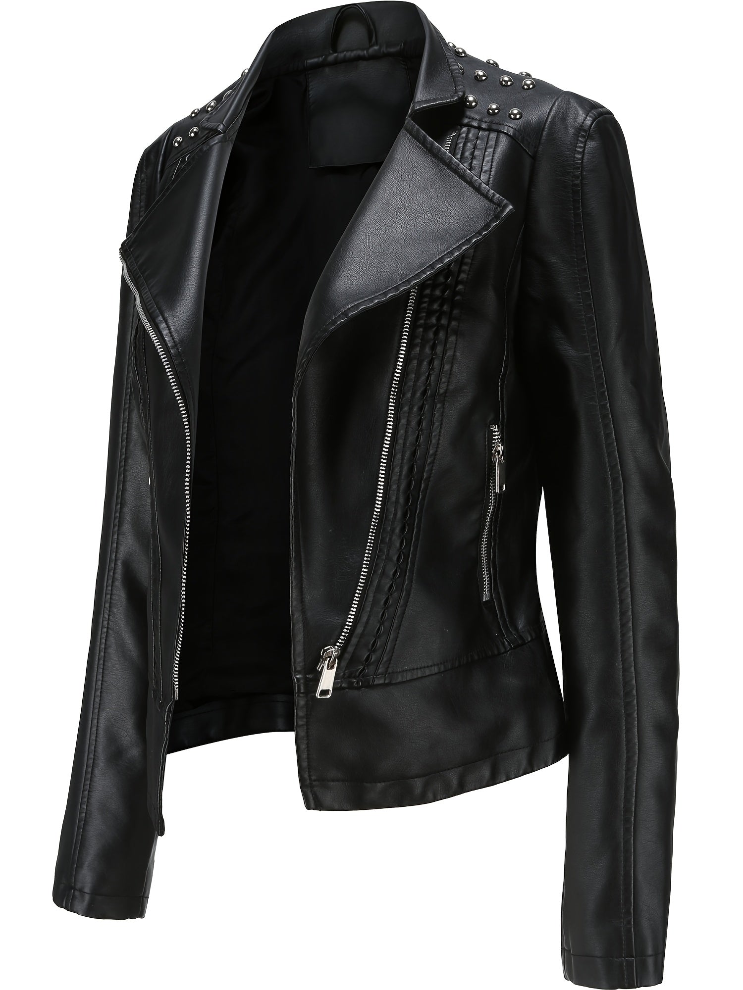 Kurtka motocyklowa retro zdobiona koralikami w jednolitym kolorze. Dopasowany fason z zamkami i kieszeniami podkreśla sylwetkę. Doskonała na wiosnę i jesień w casualowych stylizacjach.
