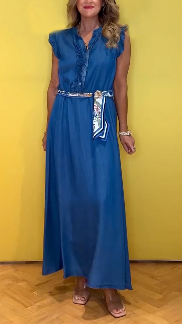 / Damska sukienka casualowa z patchworkowym wzorem i plisowanym dekoltem w kształcie litery U