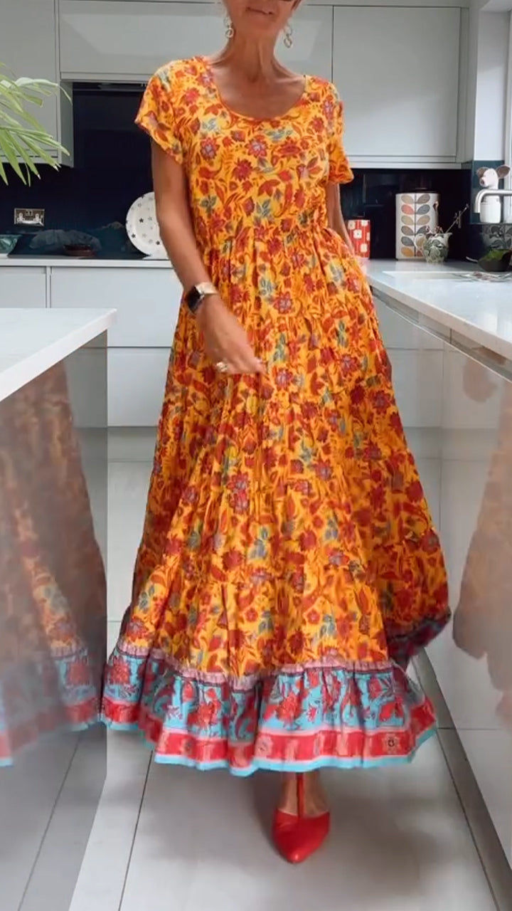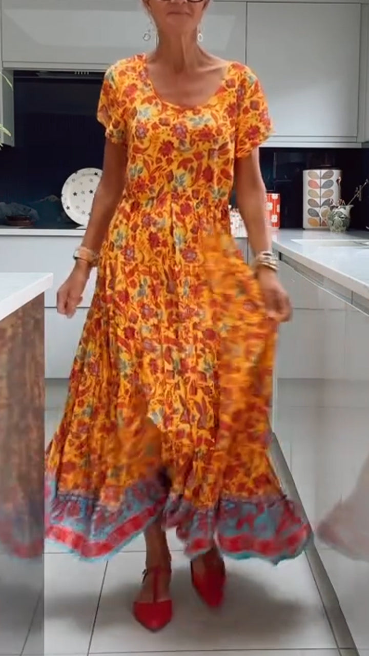 Damska sukienka casualowa z rozcięciem w serek i nadrukiem