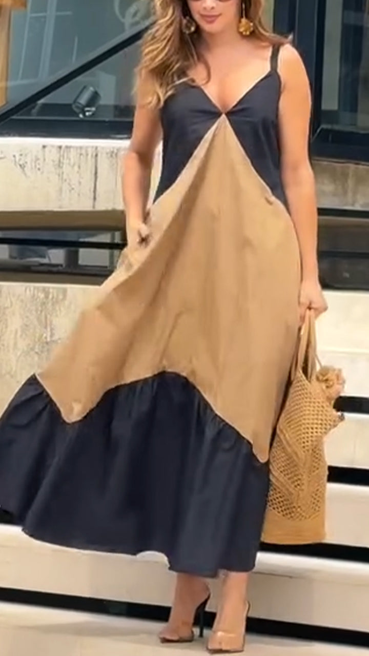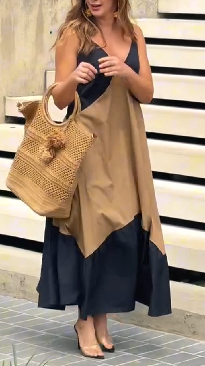 / Damska sukienka casualowa z patchworkowym wzorem i jednolitym kolorem