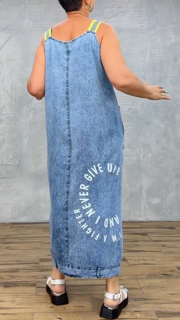 / Damska sukienka koszulowa z długim rękawem i pasiastym bawełnianym lnem i kołnierzykiem polo