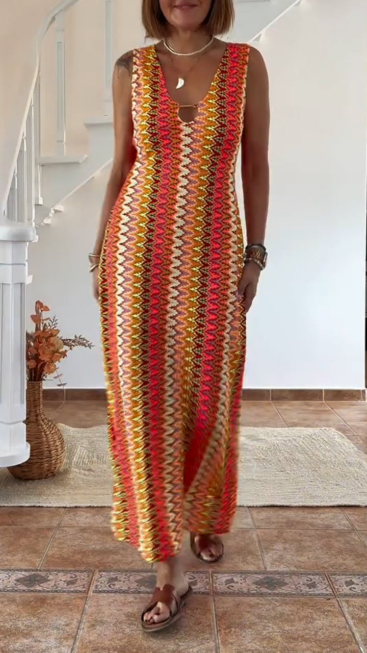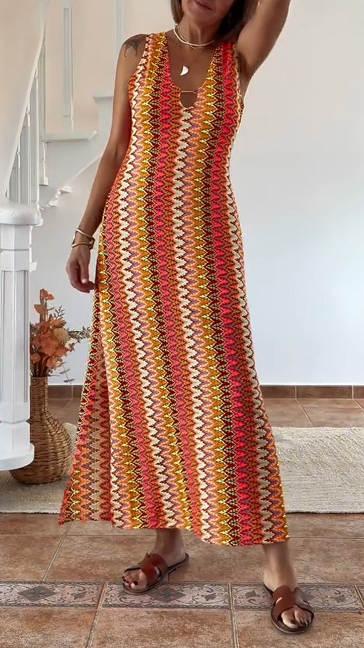 Damska sukienka casualowa z patchworkowym wzorem i dekoltem w serek