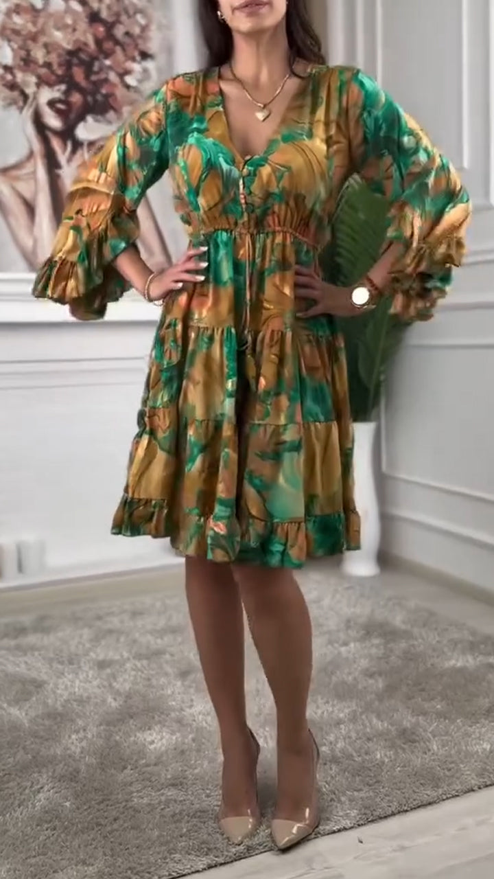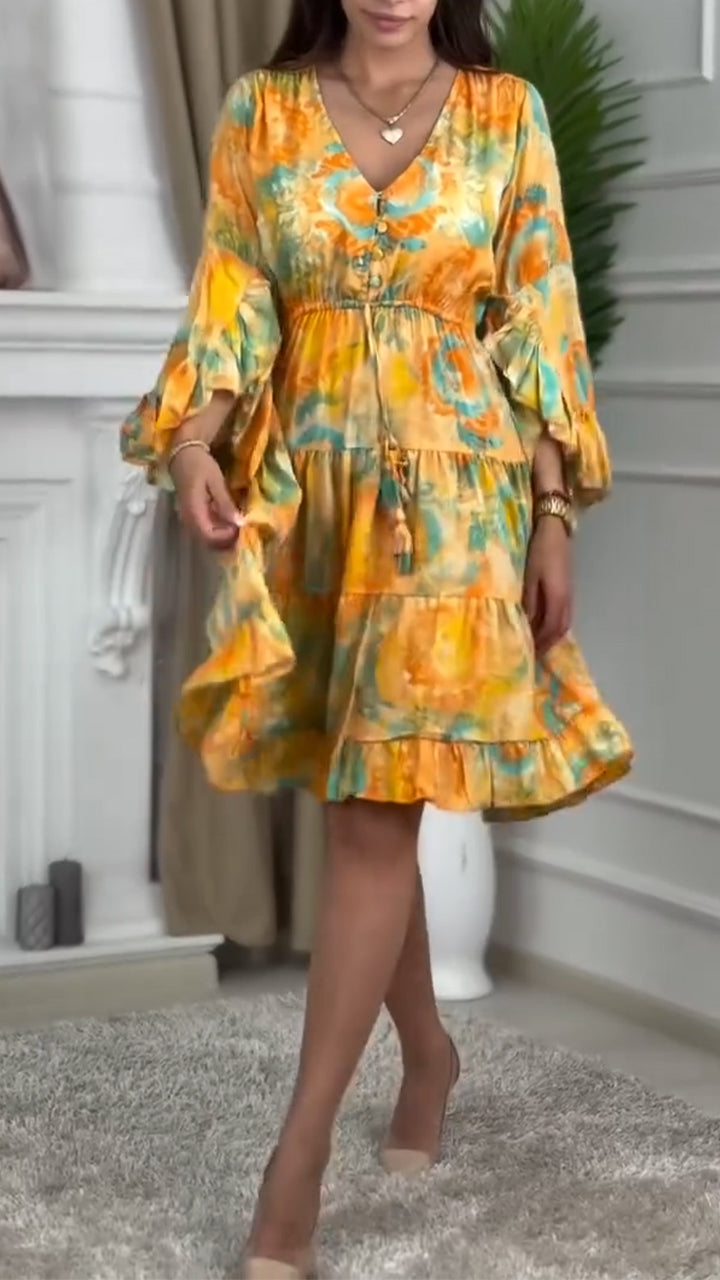 / Damska sukienka casualowa z jednym kołnierzykiem i rozcięciem