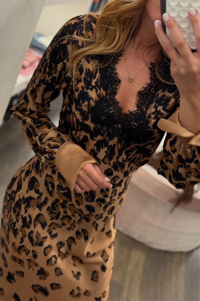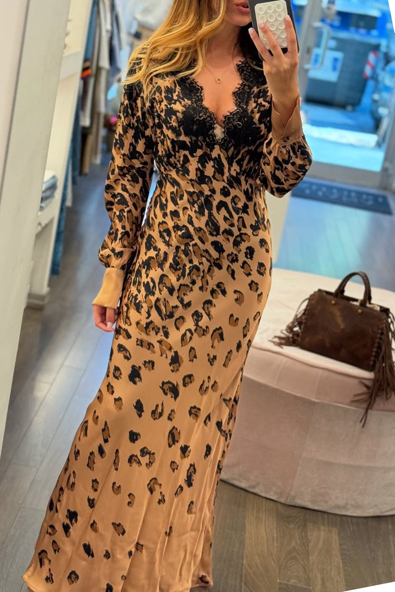 / Damska sukienka na co dzień z dekoltem w serek, farbowana krzyżowo