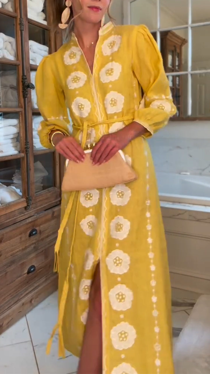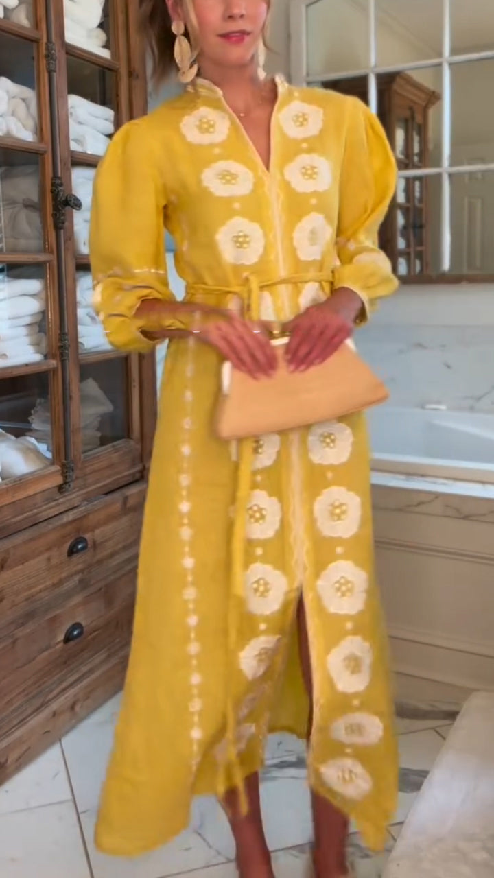 / Damska sukienka na co dzień z wieloma kieszeniami i łączeniem kołnierzyków w jednolitym kolorze