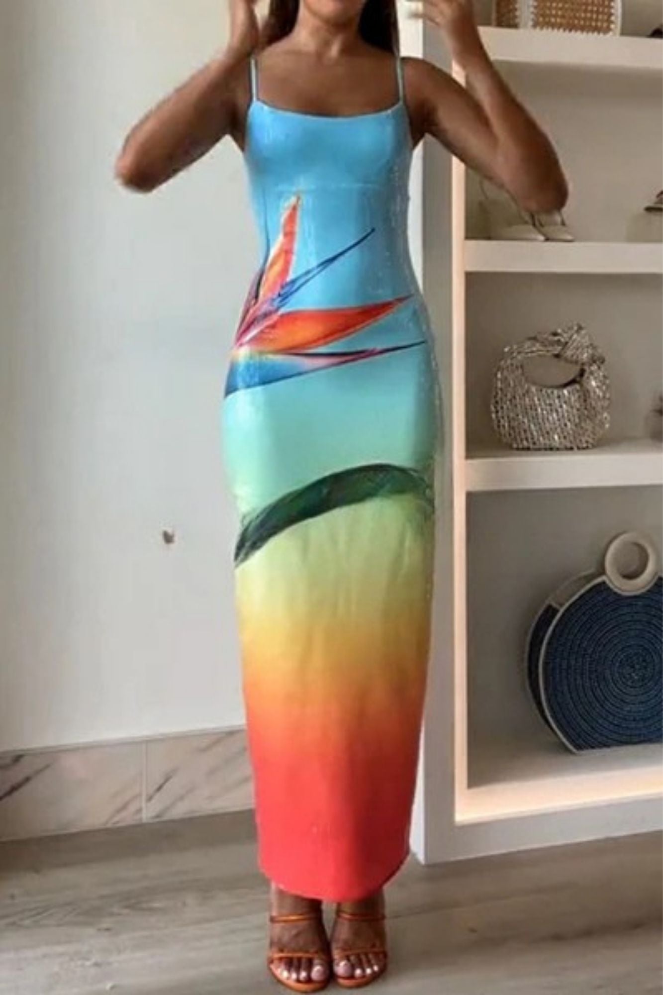 / Senne Marzenia – Cekinowa Maxi Sukienka Z Gradientowym Nadrukiem
