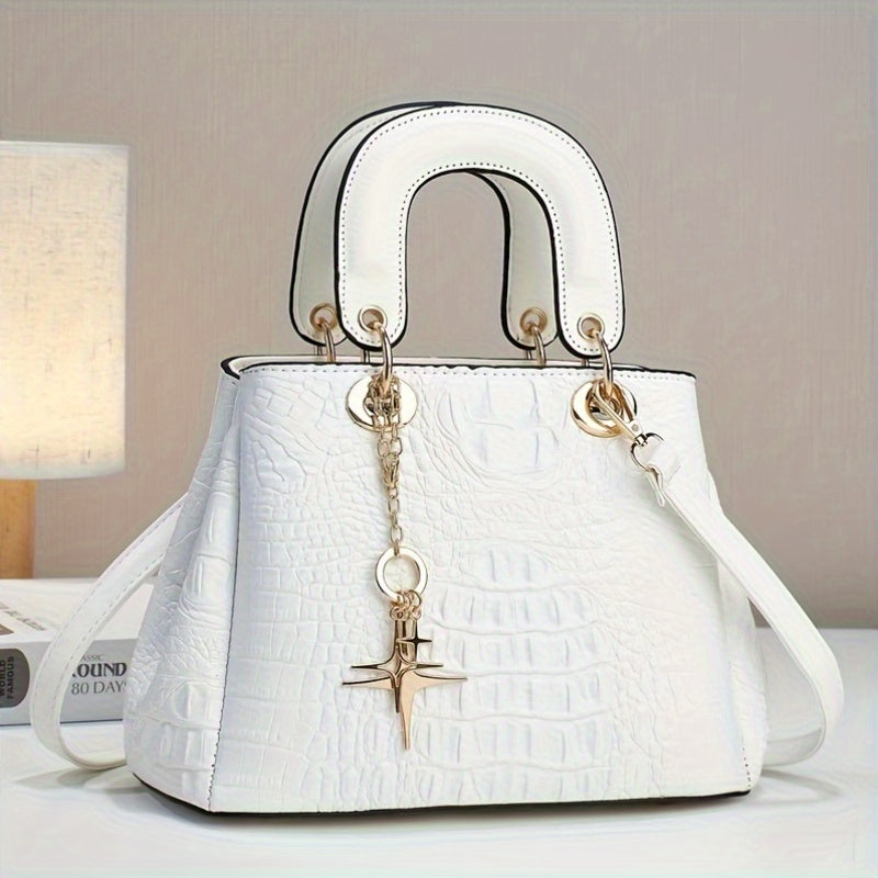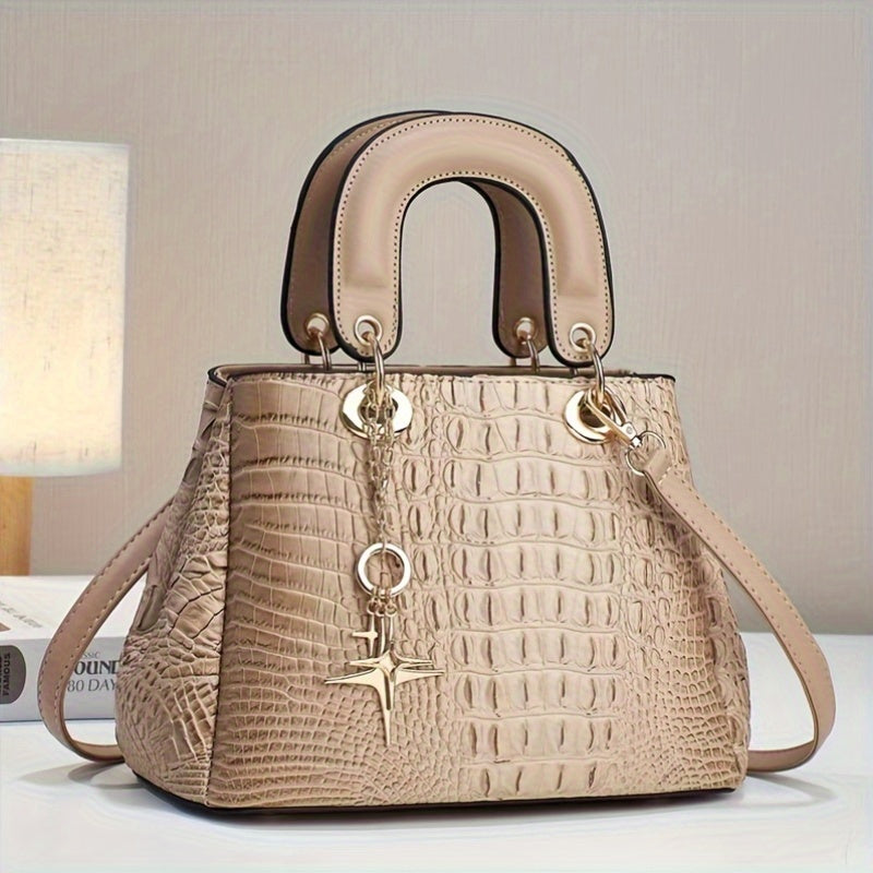 Luksusowa torba z nadrukiem krokodyla, która łączy nowoczesną formę z klasycznym stylem. Wyposażona w górny uchwyt, idealnie nadaje się do noszenia w dłoni lub na ramieniu. Trwała i pojemna, doskonale sprawdzi się zarówno na spotkaniach biznesowych, jak i w codziennym użytkowaniu. Podkreśla prestiż i elegancję.