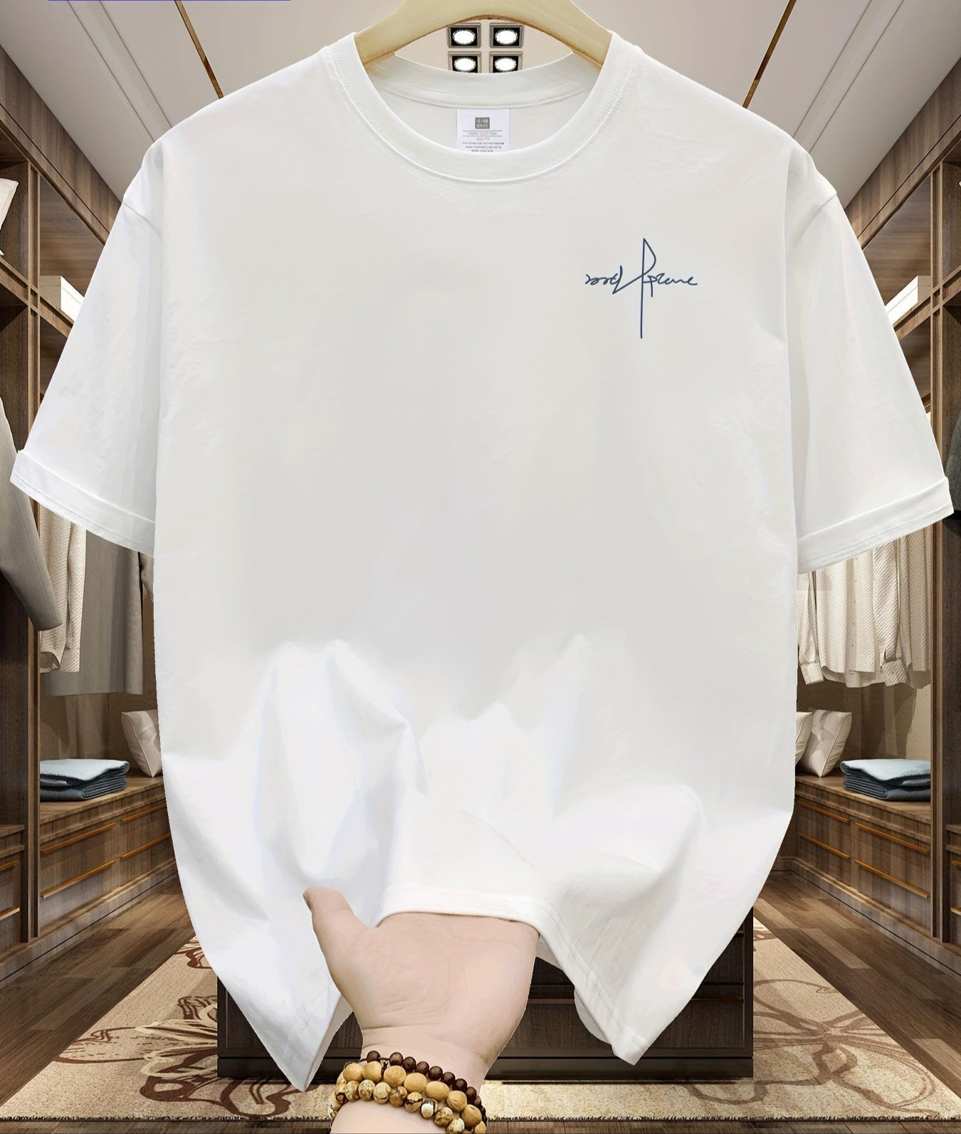 T-shirt męski z nadrukiem literowym wykonany z 100% bawełny. Idealny do codziennych stylizacji, zapewnia przewiewność i komfort w cieplejsze dni. Prosty design pasuje do każdego outfitu.