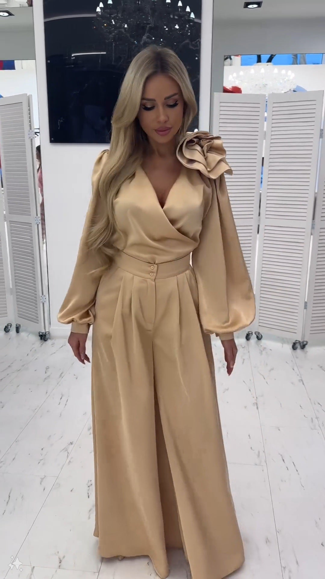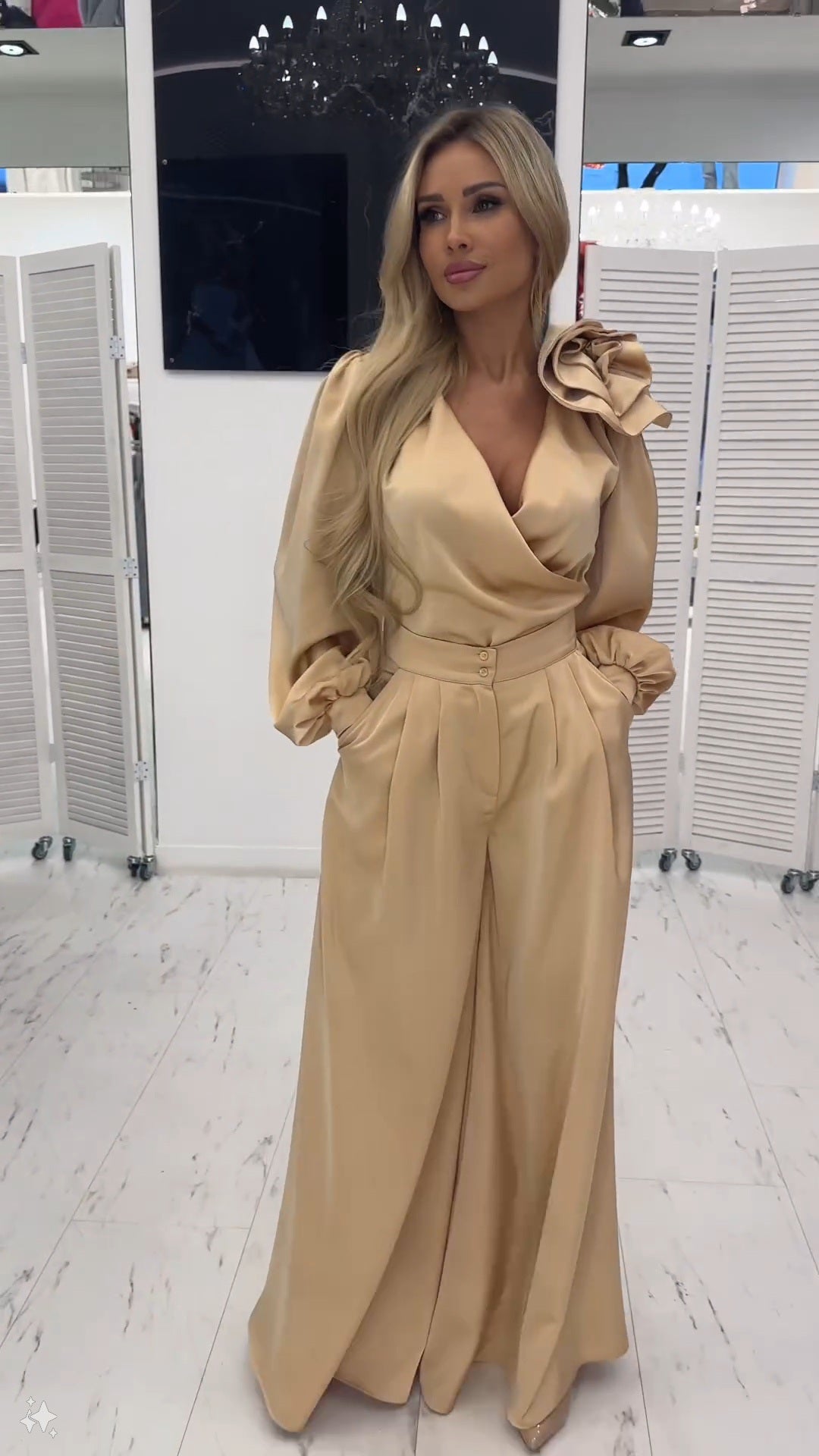 Ta stylizacja jest nie tylko bardzo modna, ale także bardzo wygodna. Idealna zarówno na casualowe, jak i eleganckie okazje!