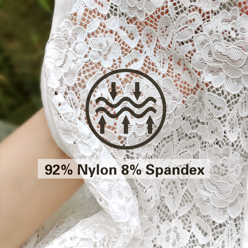 • Materiał: Miękka, oddychająca koronka, wykonana w 92% z nylonu i w 8% ze spandexu, lekko przepuszczalna dla skóry