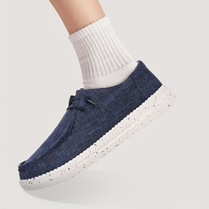 Oddychające mokasyny z tkaniny o jednolitym kolorze i podeszwą EVA. Wsuwana konstrukcja sprawia, że są idealne na każdą porę roku. Minimalistyczny design pasuje do codziennych stylizacji w stylu casual.