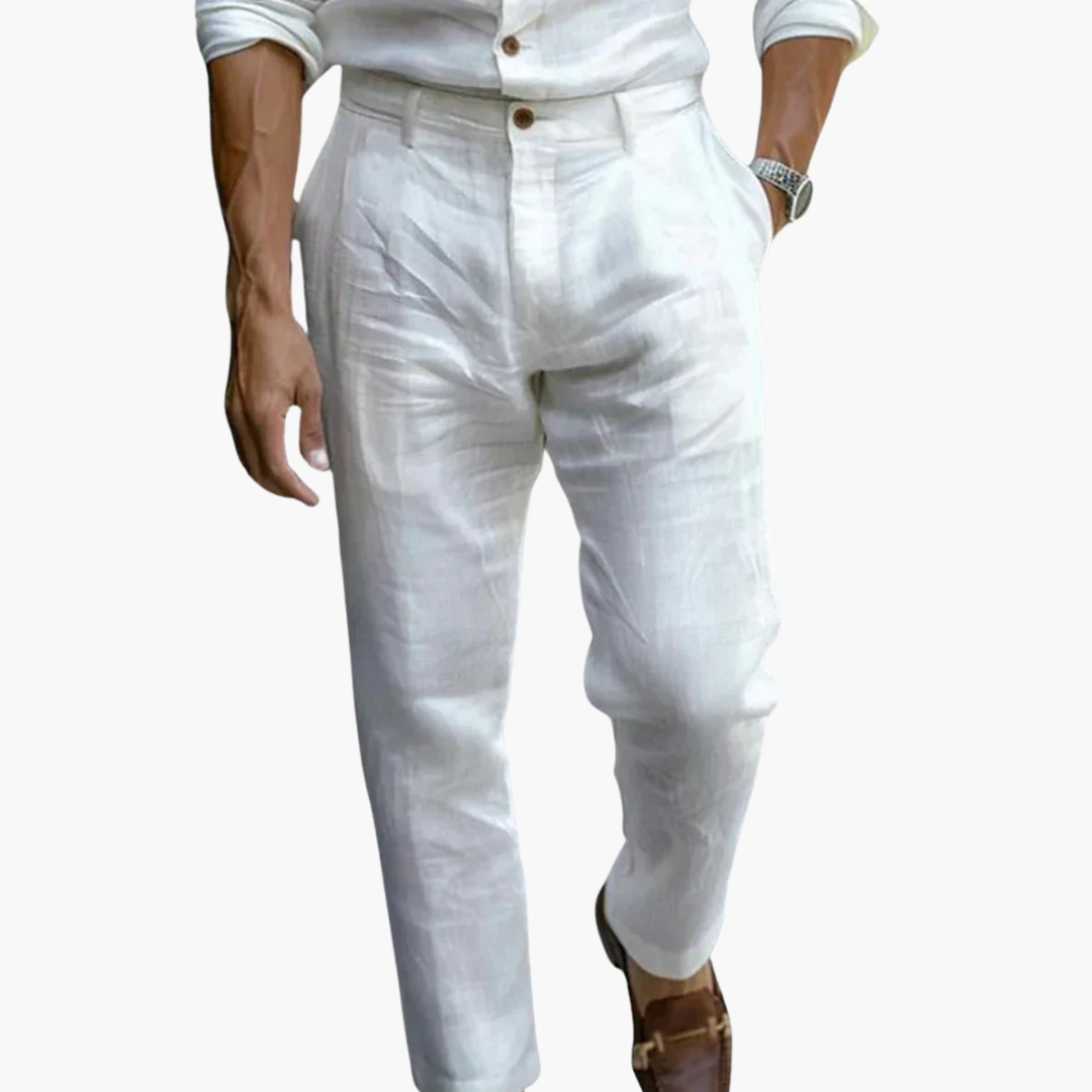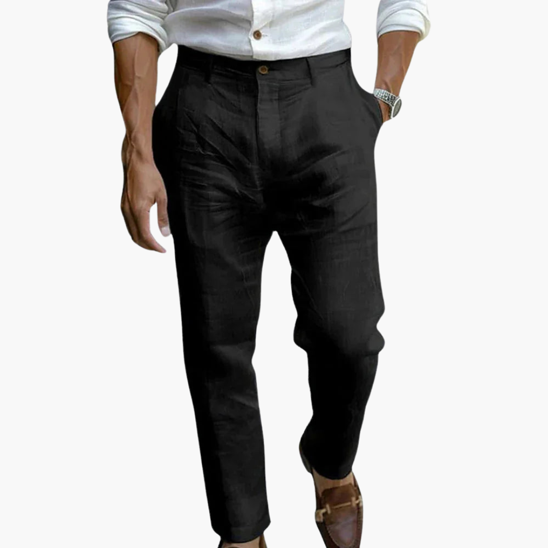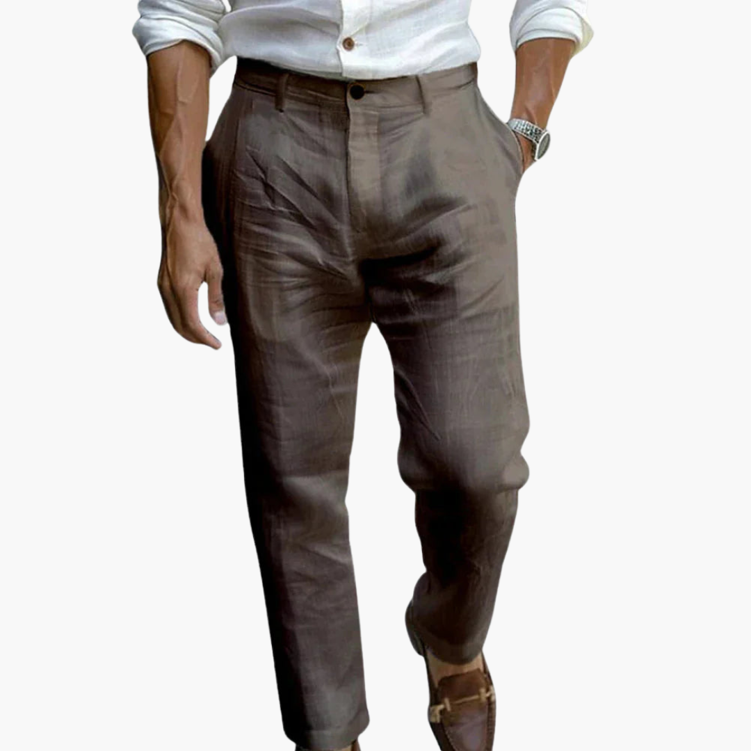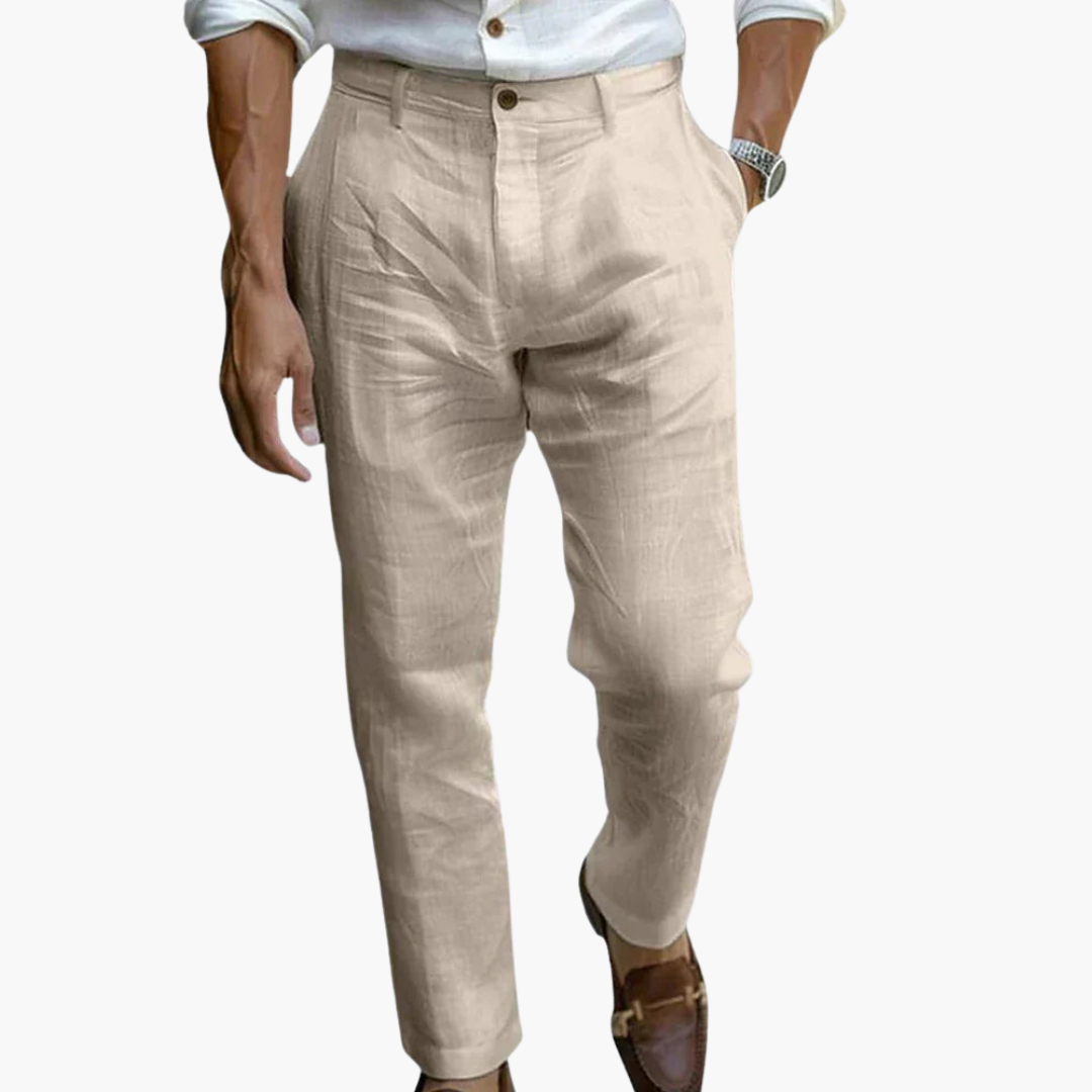 Te swobodne lniane spodnie natychmiast odświeżą Twój wygląd. Dzięki luźnemu krojowi, przewiewnej tkaninie i wszechstronnemu wzornictwu idealnie nadają się na dni relaksu, eleganckie, swobodne wydarzenia lub kreatywne stroje biurowe. Dla mężczyzn, którzy chcą połączyć wygodę i klasę.