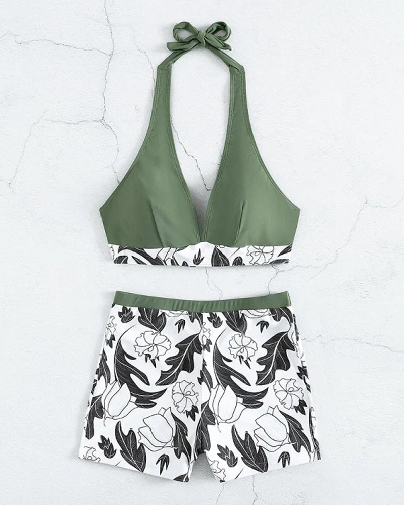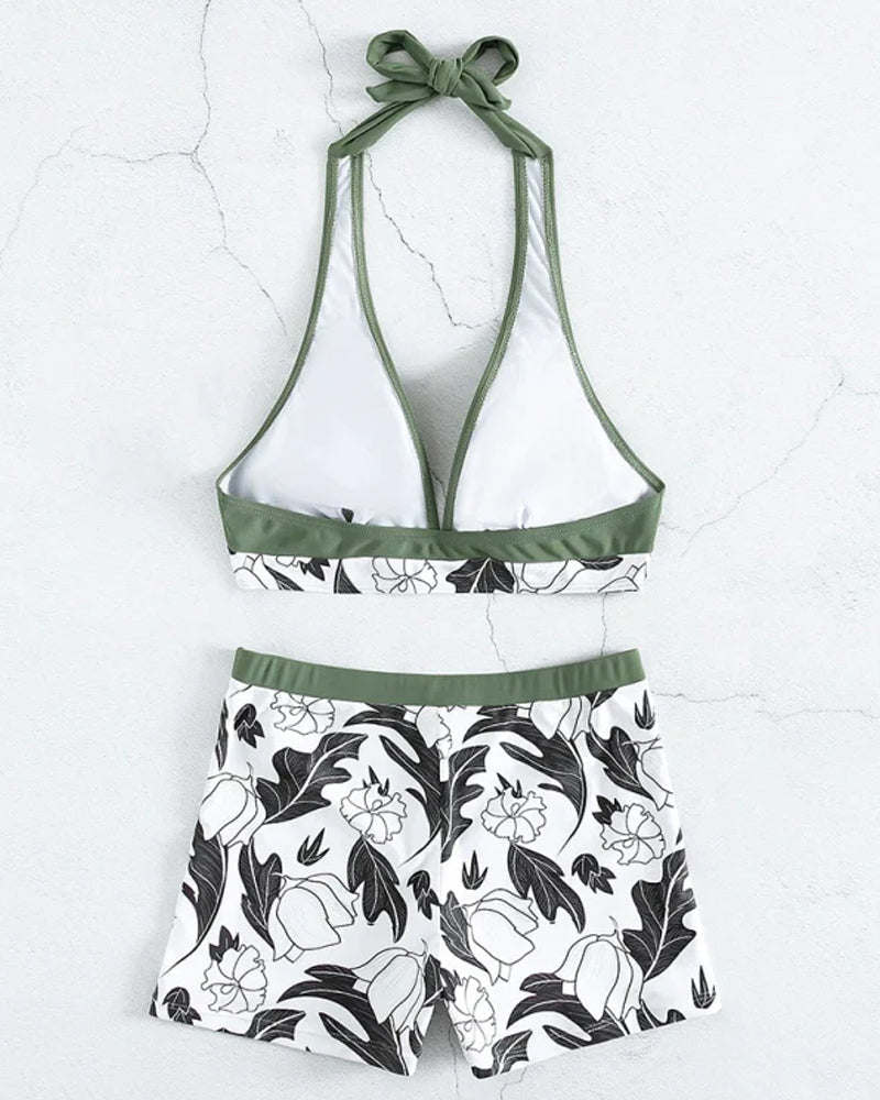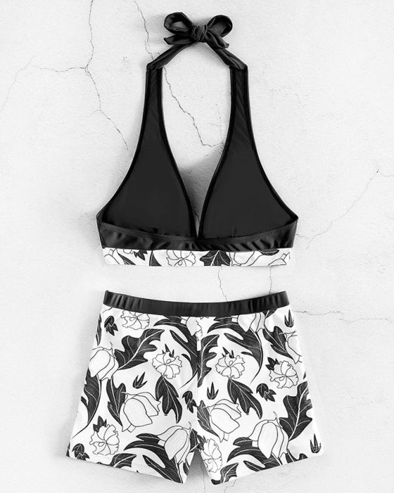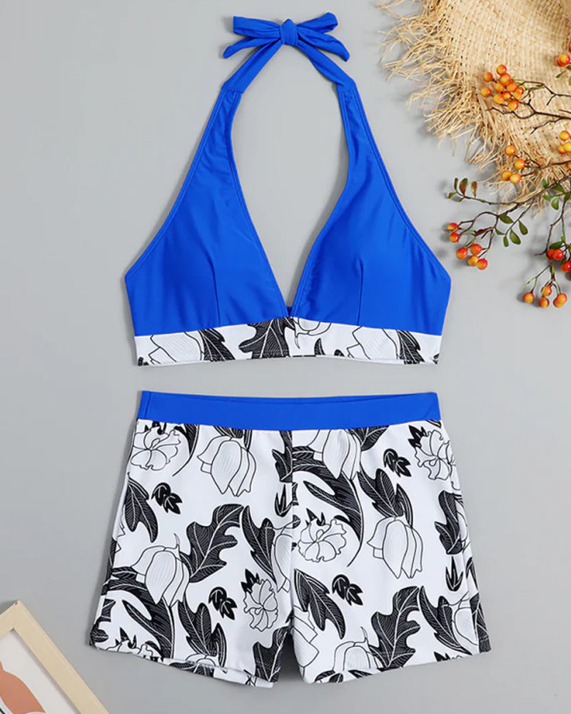 Tankini bokserki bez rękawów z nadrukiem i dekoltem w kształcie litery U