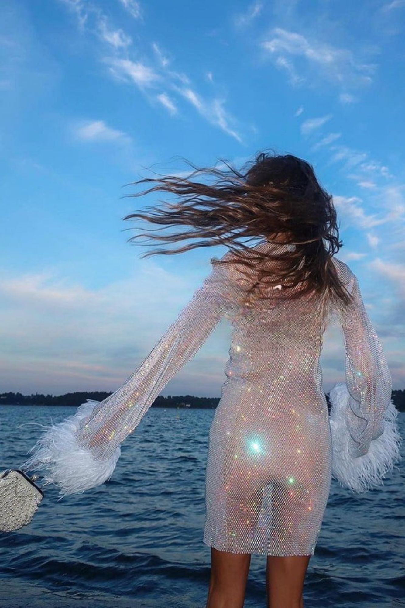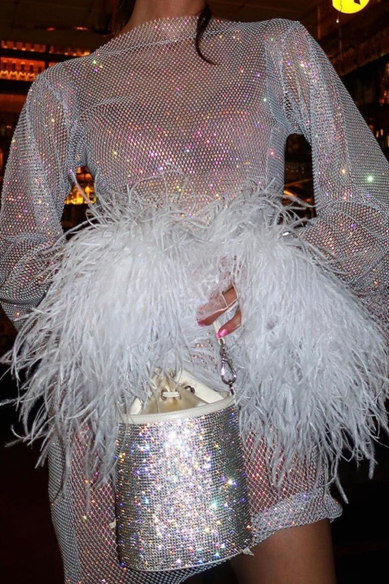 Niespodzianka Nocy – Cekinowa Mini Sukienka Z Cyrkoniami I Piórami