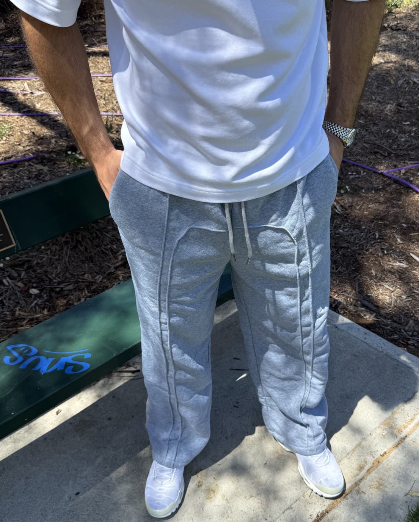 Podnieś swój styl uliczny dzięki tym obszernym spodniom dresowym. Z odważnym, retro wzorem łączenia i luźnym krojem zapewniają maksymalny komfort i styl, idealne dla tych, którzy chcą się wyróżniać i swobodnie poruszać.