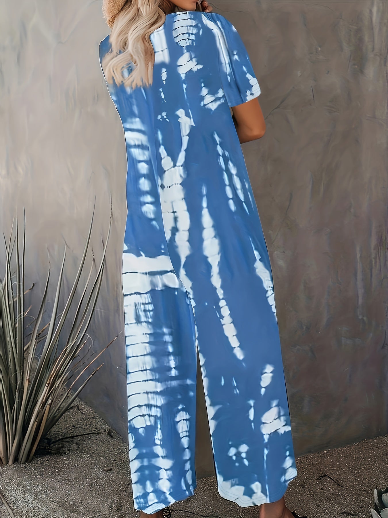 Luźny kombinezon w paski z krótkim rękawem i kieszeniami. Idealny na lato i wiosnę, zapewnia swobodę ruchów i komfort w codziennym użytkowaniu. Prosty krój sprawia, że pasuje do casualowych i miejskich stylizacji.