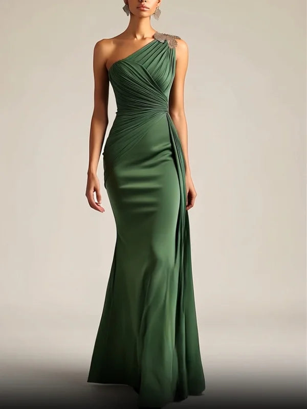 / Długa Suknia z Marszczeniem na Jedno Ramię