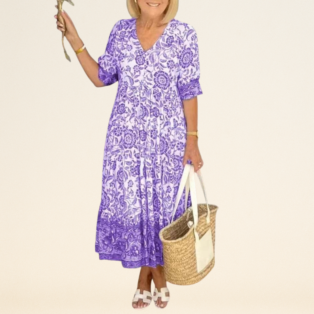 Palma - Elegancka sukienka w kwiaty z dekoltem w serek