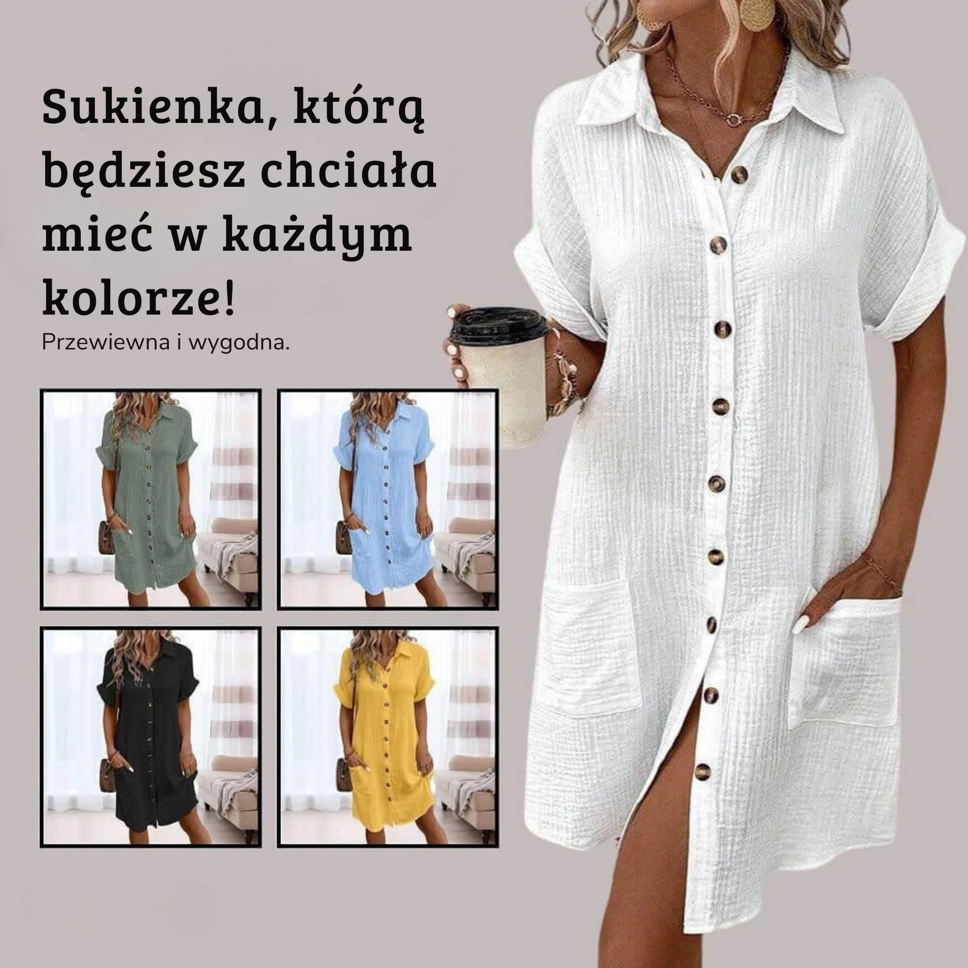 Niezależnie od tego, czy siedzisz za laptopem, robisz szybkie zakupy czy wpadasz na spontaniczny drink – sukienka Samanta to Twój najlepszy towarzysz. Przewiewny krój i praktyczne kieszenie zapewniają pełen komfort, dzięki czemu zawsze czujesz się pewnie, nawet gdy wychodzisz w pośpiechu.