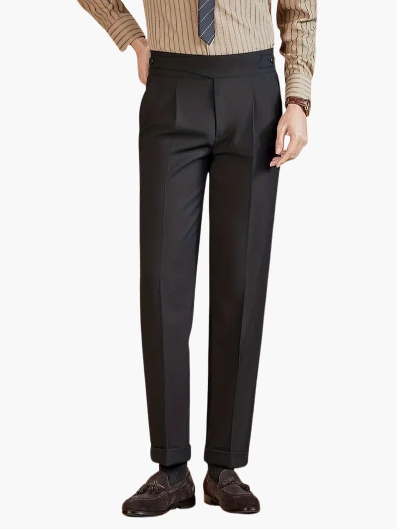 Ulepsz swoją profesjonalną garderobę dzięki spodniom biznesowym Sander, które oferują zarówno wyrafinowanie, jak i wygodę. Zaprojektowane, aby oferować elegancki, dopasowany wygląd, który wzbogaci każdy strój biznesowy, spodnie te są niezbędne dla nowoczesnego mężczyzny.