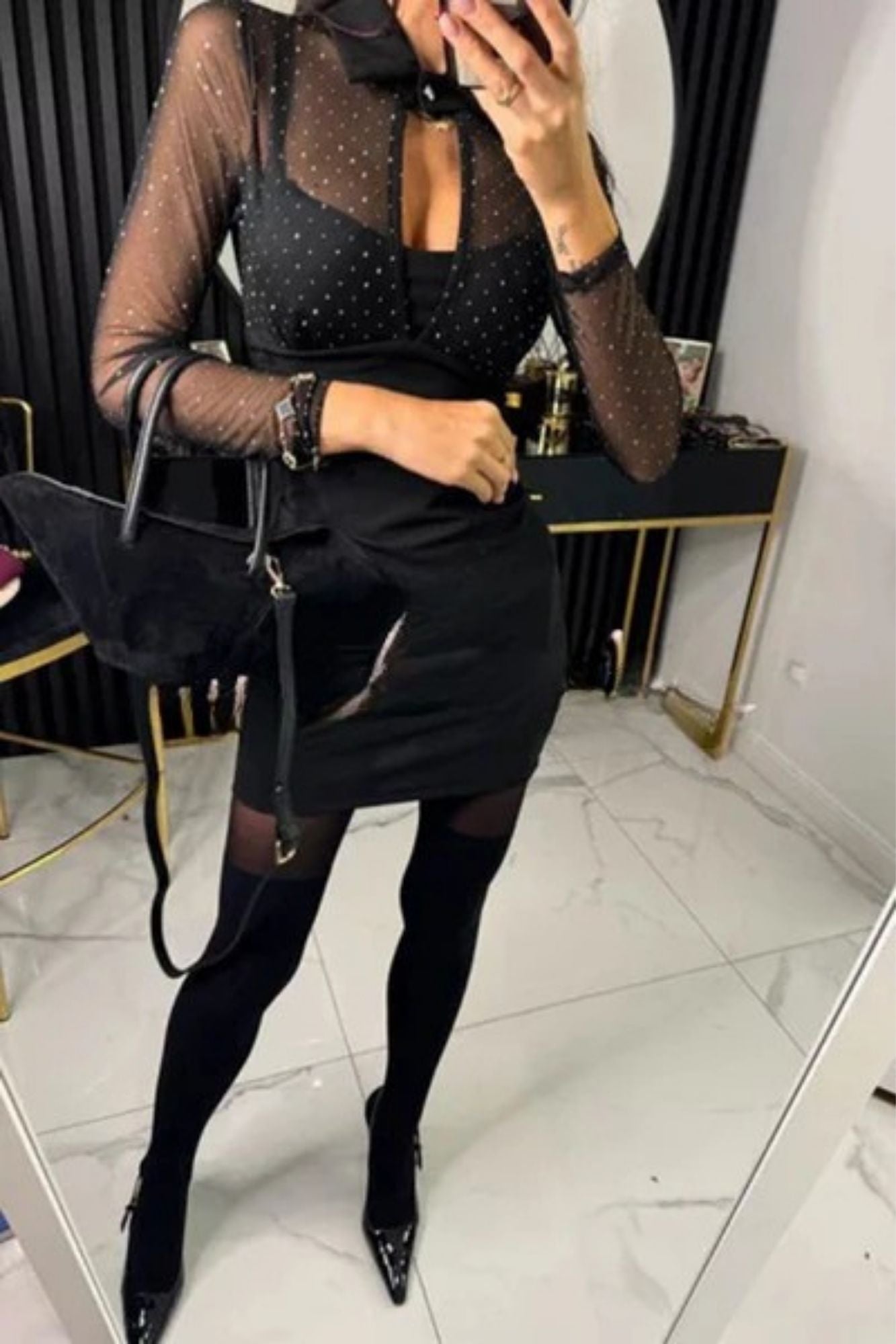 / Stevie – Siateczkowa Mini Sukienka Z Brokatem I Wycięciami