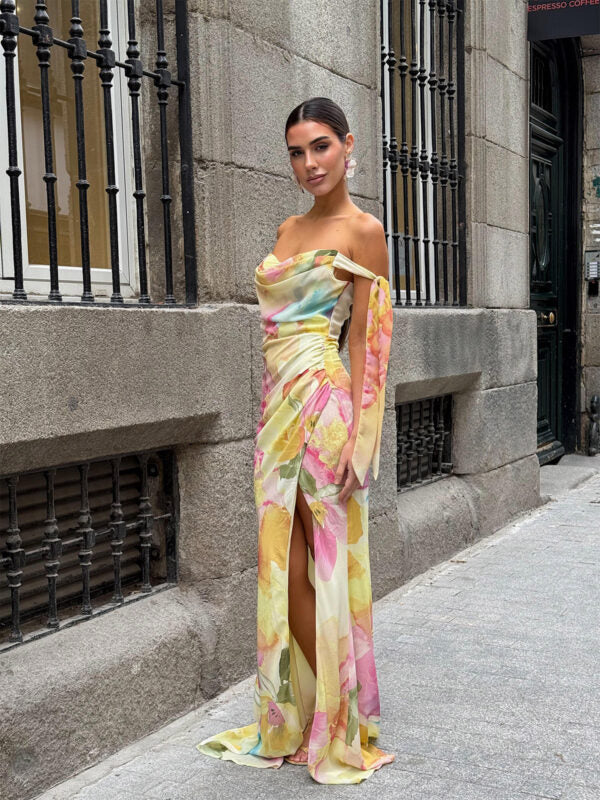 Halterneck Printed off-the-Shoulder Slim-Fit Fashion Large Swing Skirt