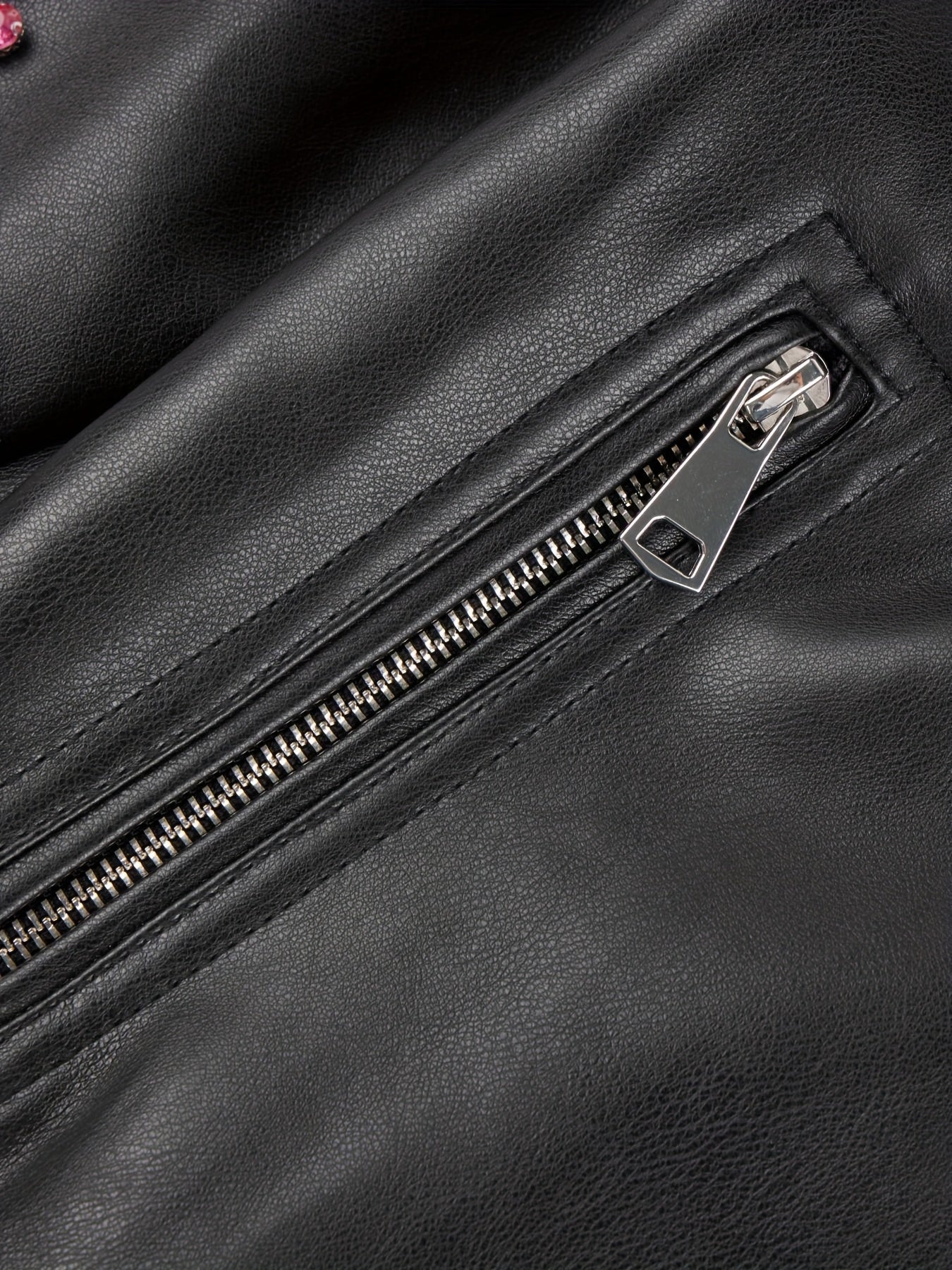 Casualowa kurtka z mieszanki poliestru i wiskozy imitującej skórę. Lekka marynarka na wiosnę i jesień z zamkiem błyskawicznym. Modny i praktyczny wybór na co dzień.