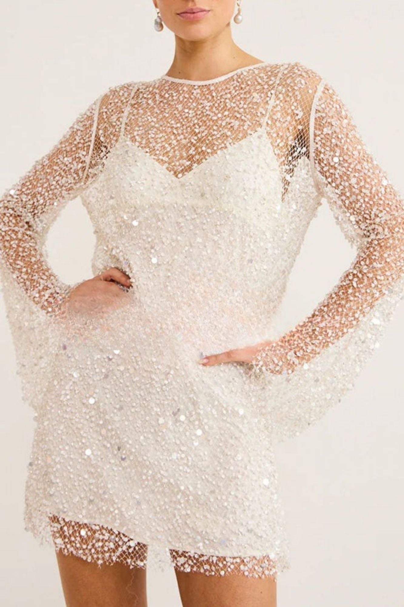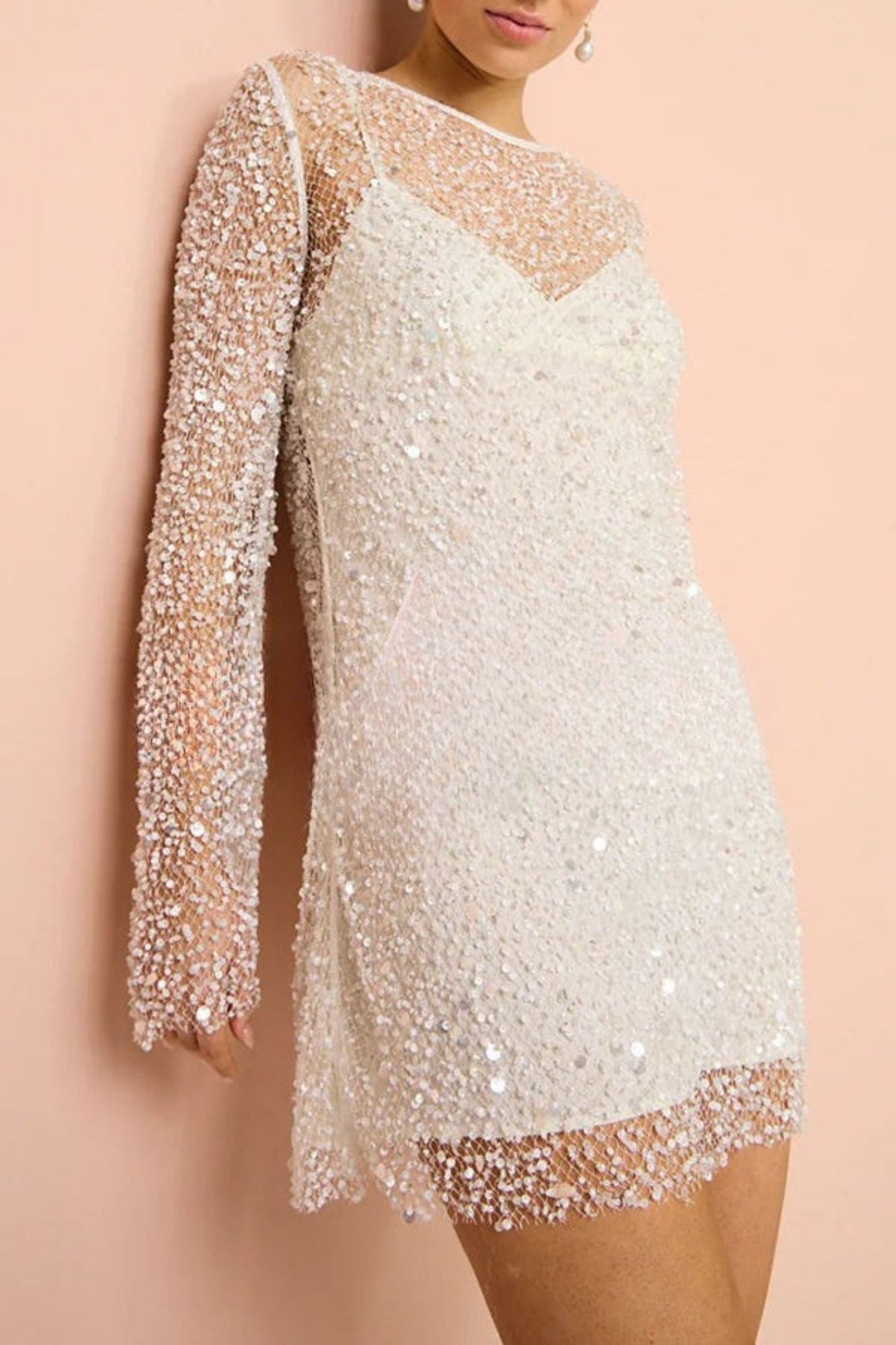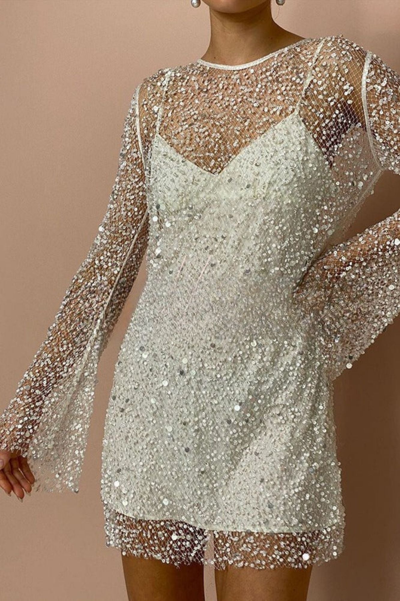 / Błyszcz I Lśnij – Cekinowa Mini Sukienka Z Perłami