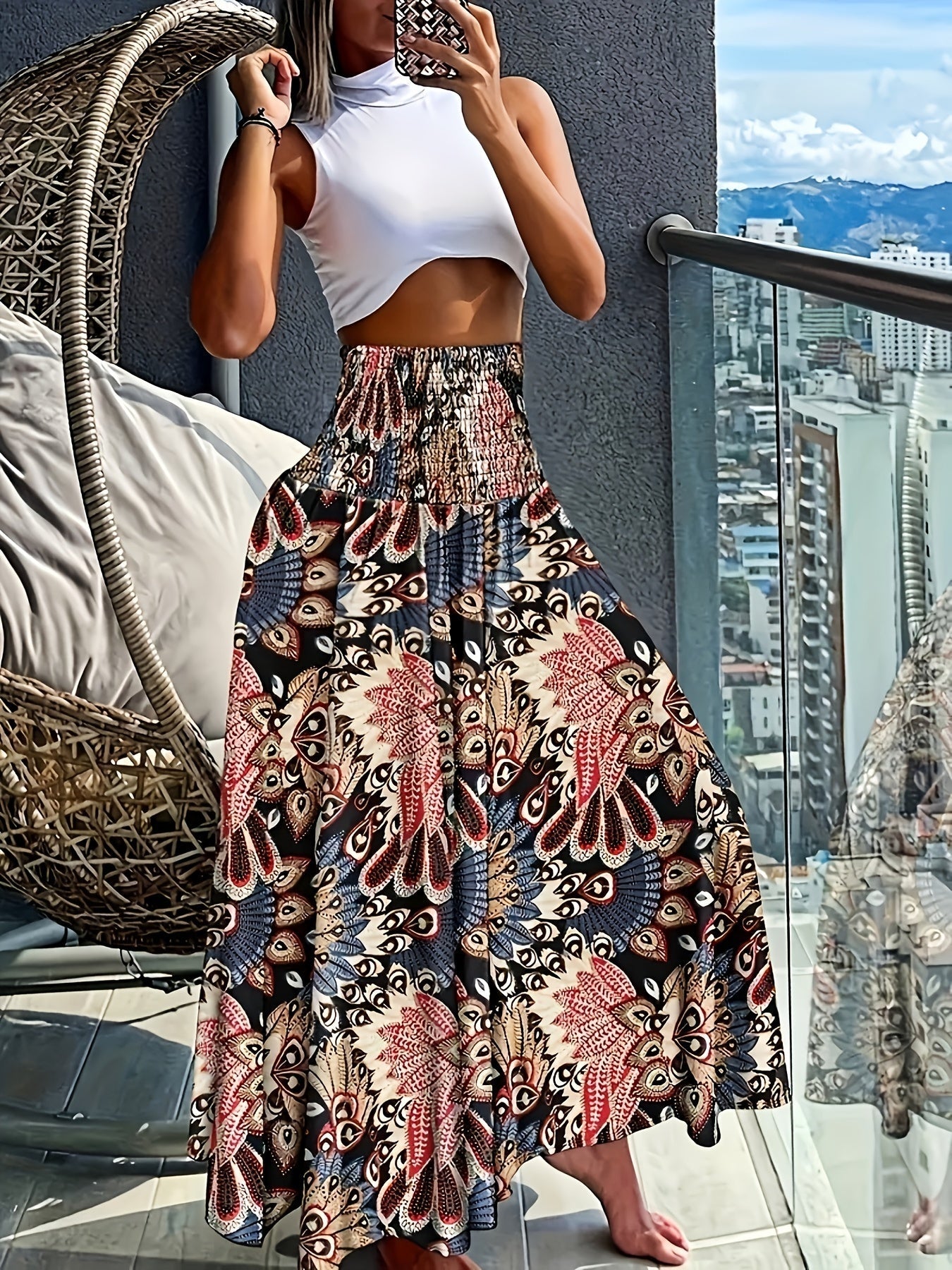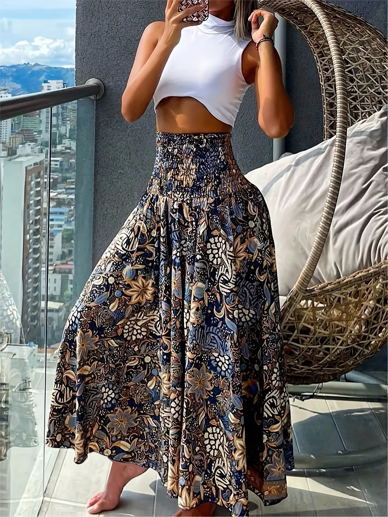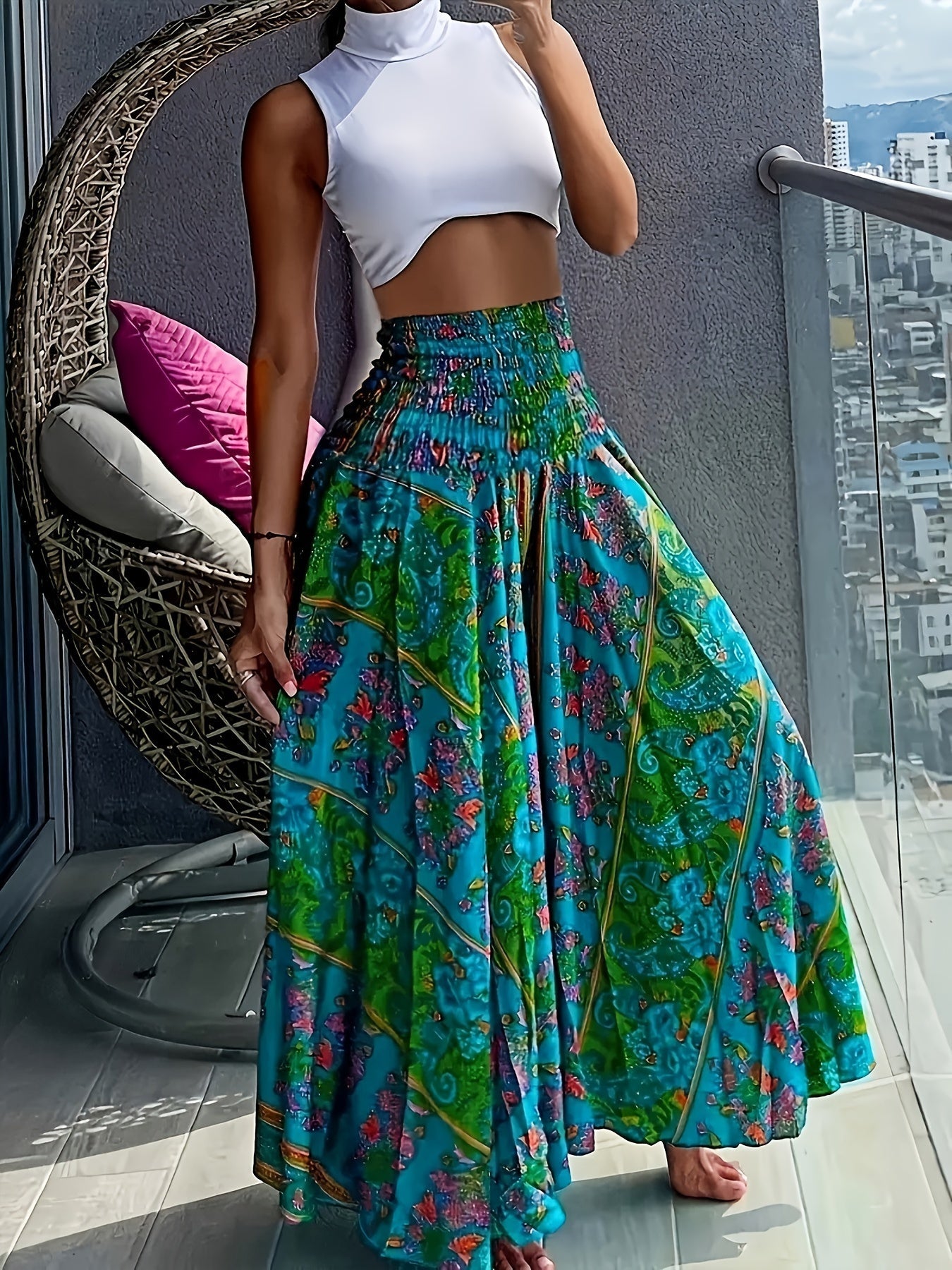 Falkoria to spódnica z elastycznym pasem i warstwowymi falbankami w tropikalny wzór. Jej luźny krój nadaje lekkości, a tkanina pozwala na pranie w pralce. Idealna na lato, wakacje i codzienne wyjścia. Stylowy wybór dla kobiet ceniących zwiewne fasony.