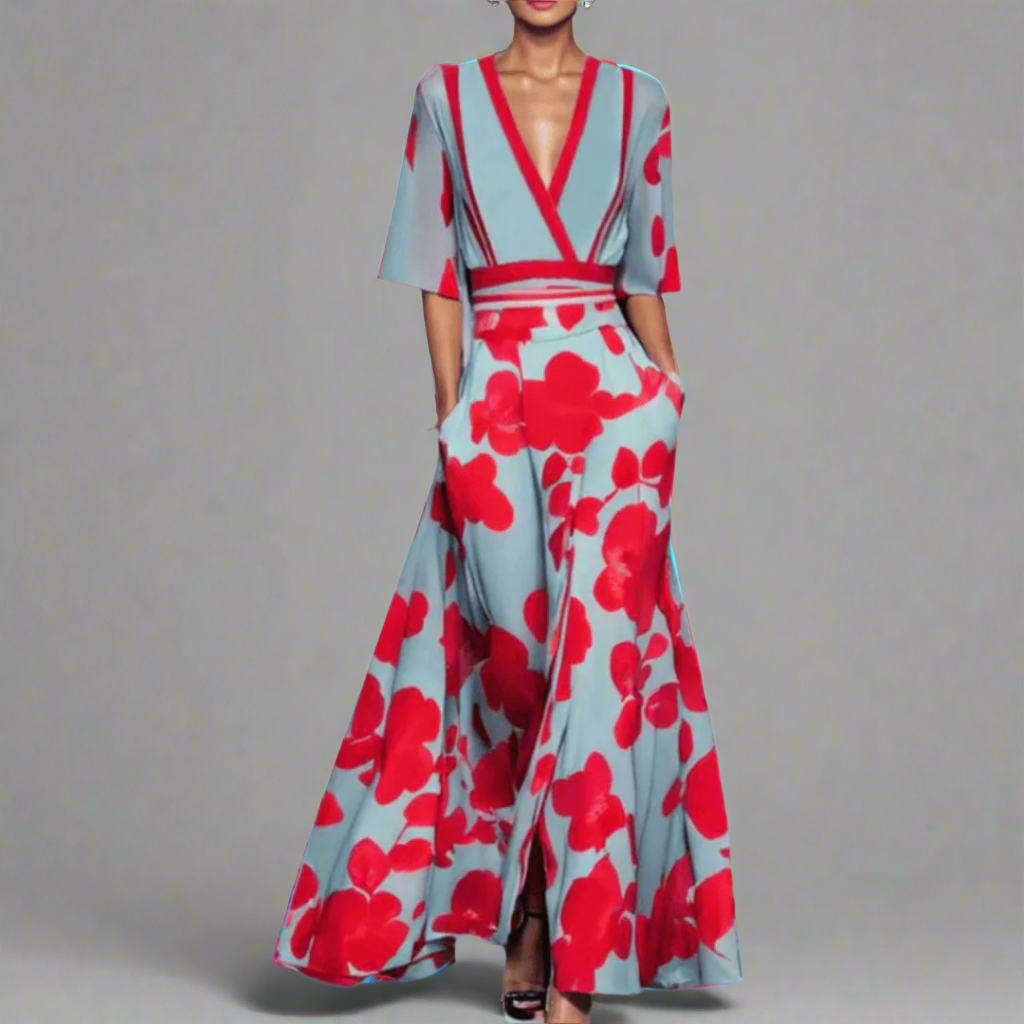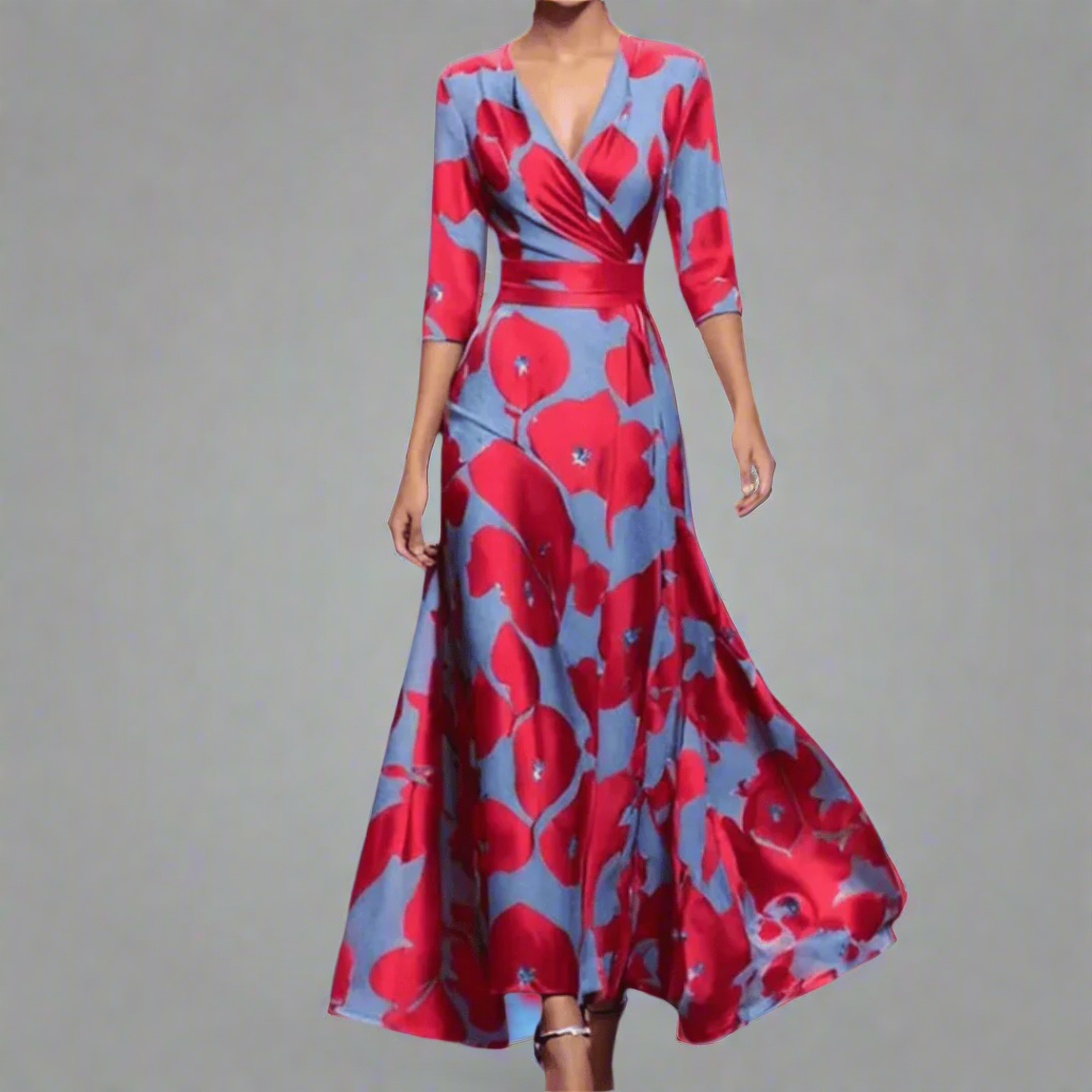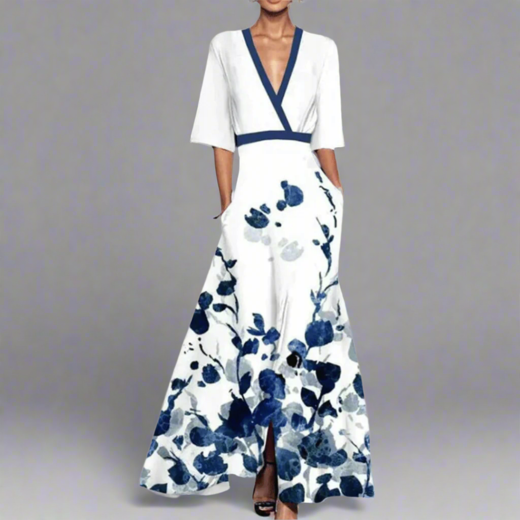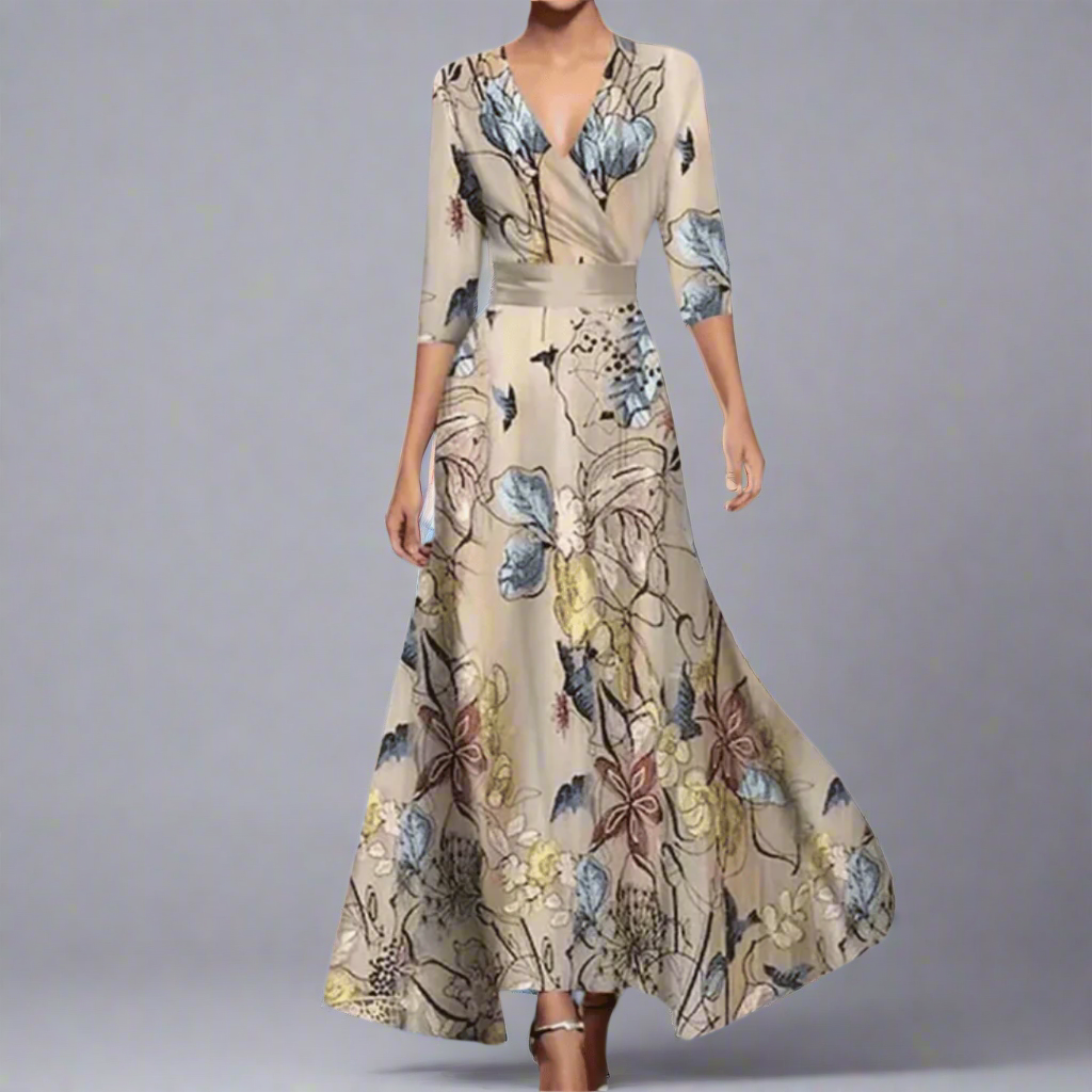 Stefanie | Elegancka długa sukienka z najwyższej jakości materiału w kwiaty