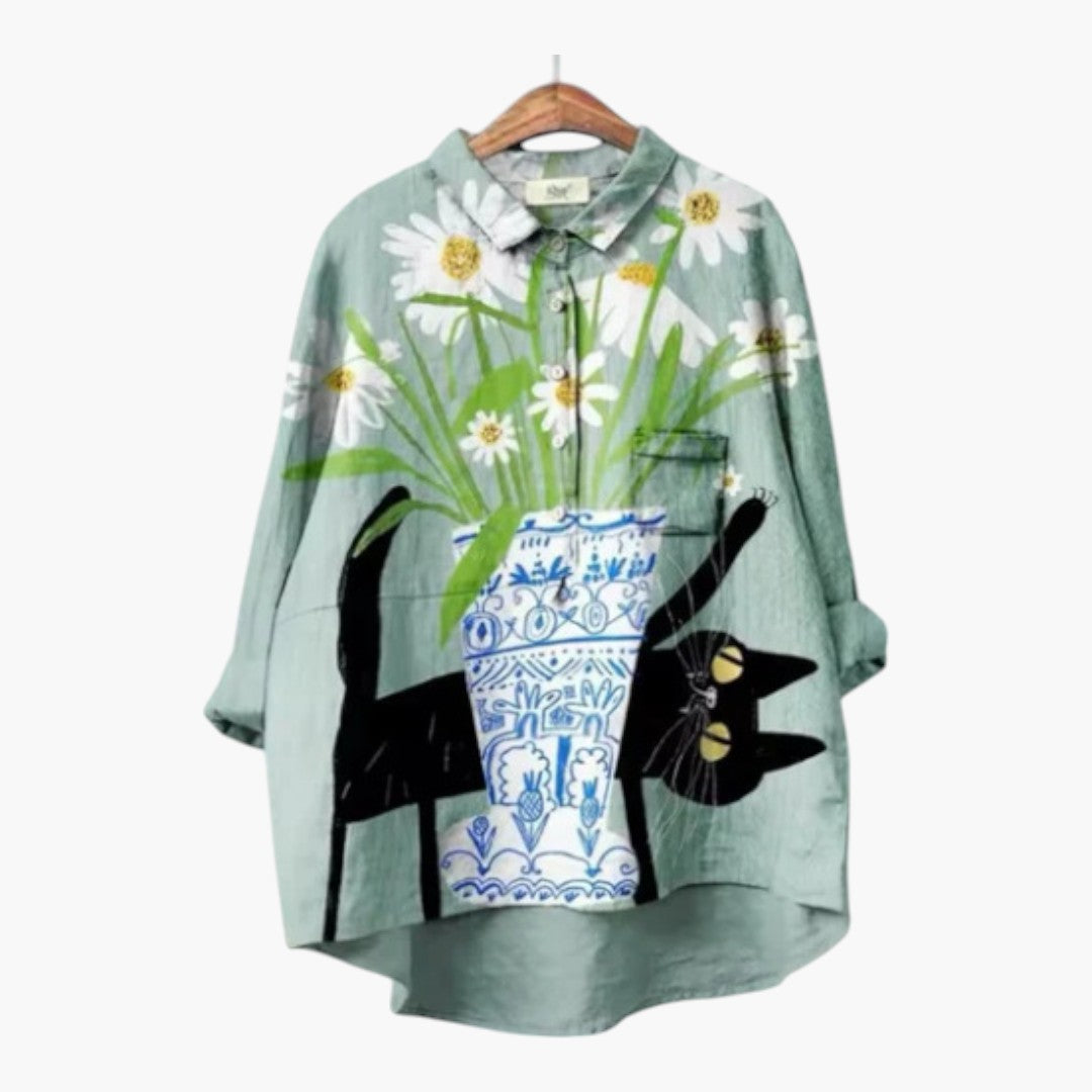 Ta bluzka jest przeznaczona dla tych, którzy chcą emanować elegancją bez wysiłku. Pochlebny krój i wyrafinowany design zapewniają stylowy wygląd, a miękka i wygodna tkanina jest przyjemna dla skóry. Uniwersalny element, który nadaje się zarówno do noszenia na co dzień, jak i na bardziej formalne okazje.