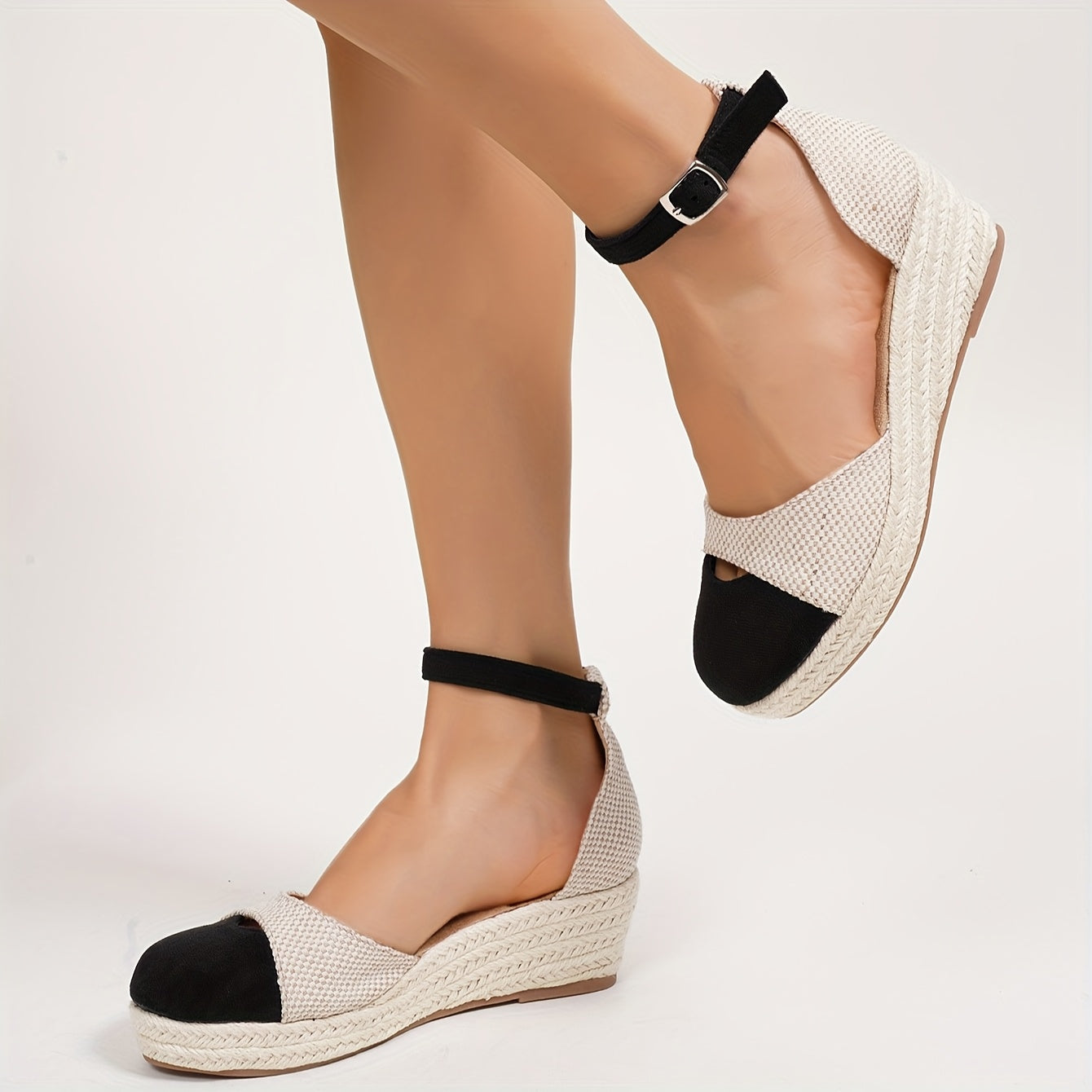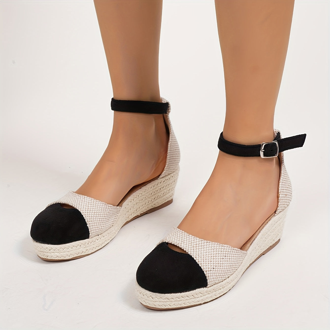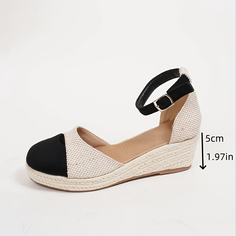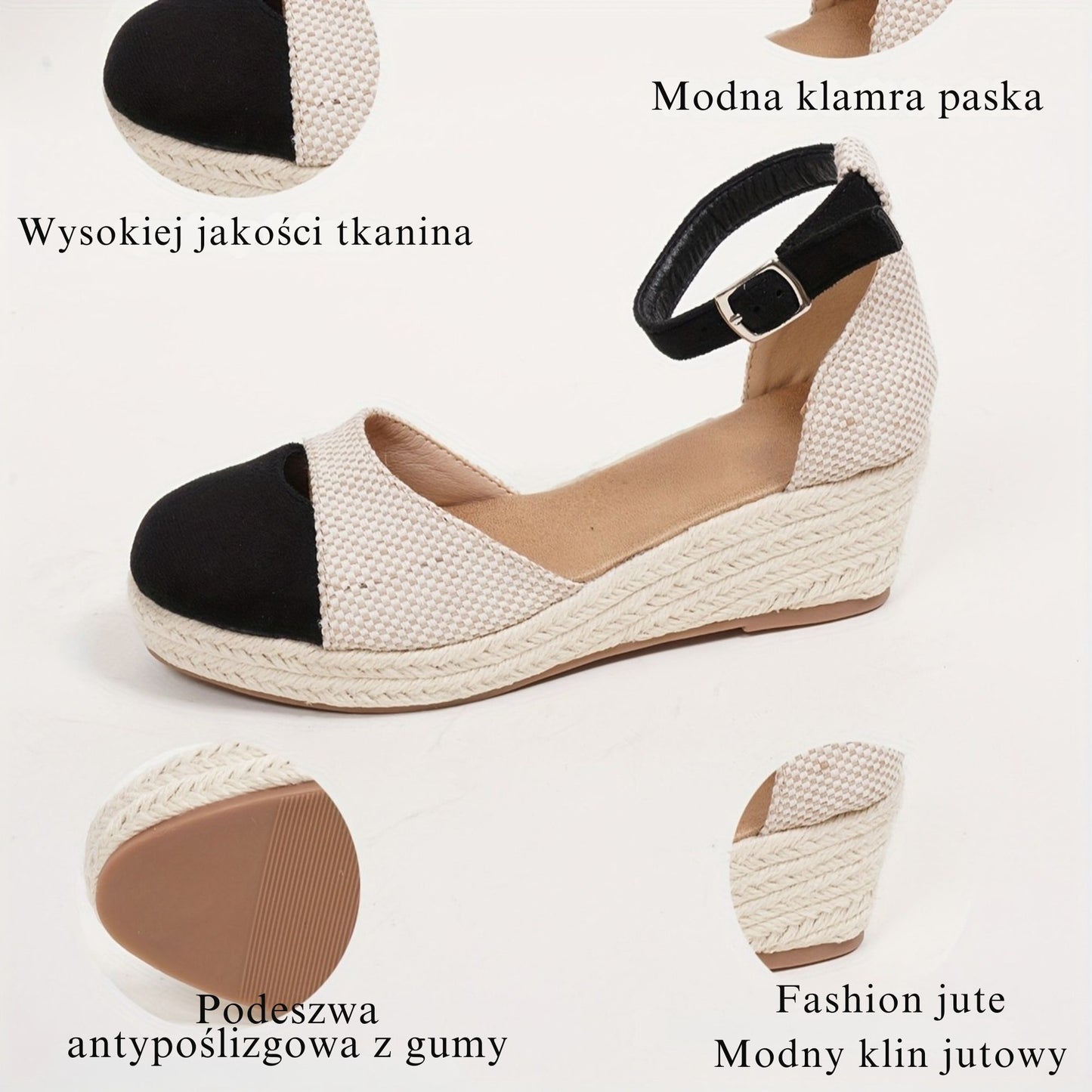Modne sandały na koturnie w biało-czarnym wzorze łączą komfort i elegancję w codziennym stylu. Pasek w kostce dodaje stabilności, a okrągły nosek podkreśla ich lekki charakter. Tkany wierzch i podeszwa TPR zapewniają trwałość i wygodę użytkowania. Idealne do casualowych i preppy stylizacji.