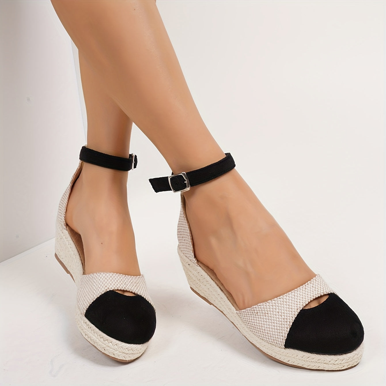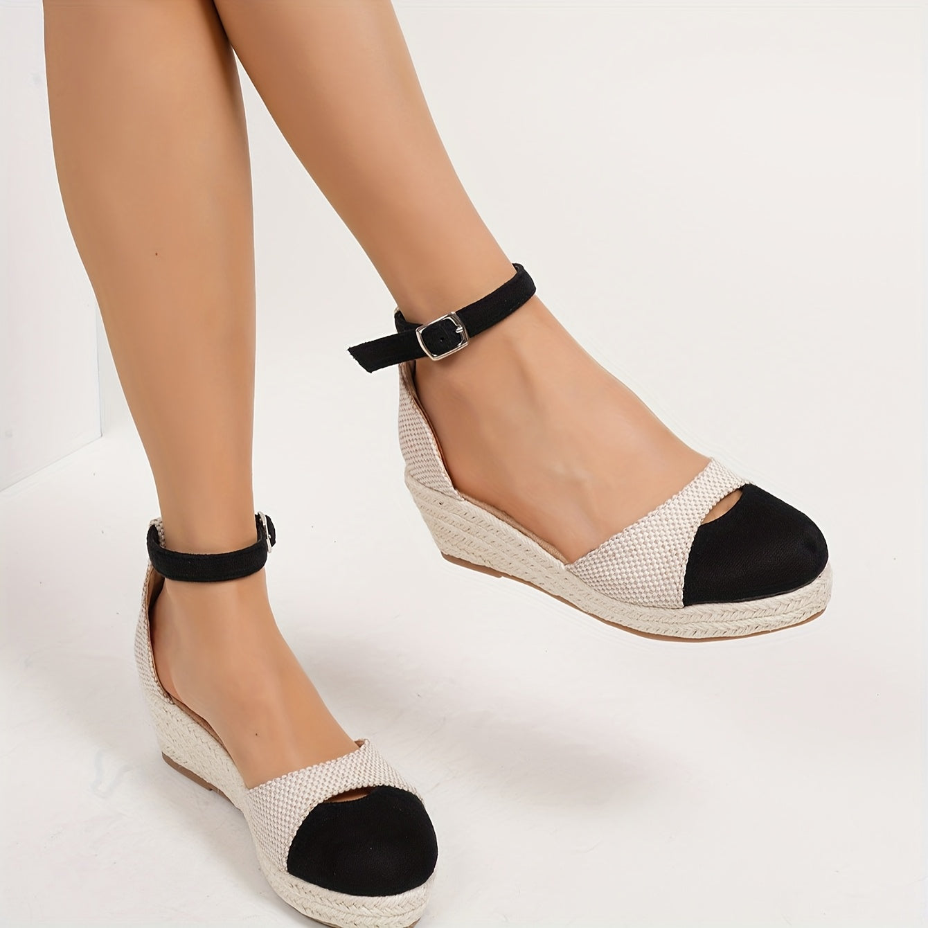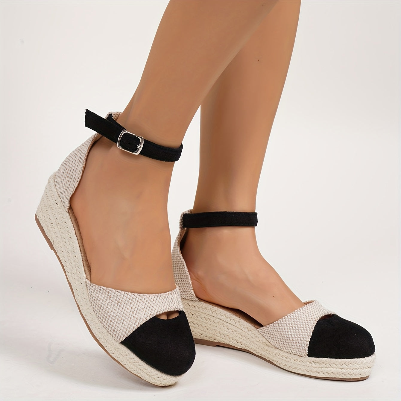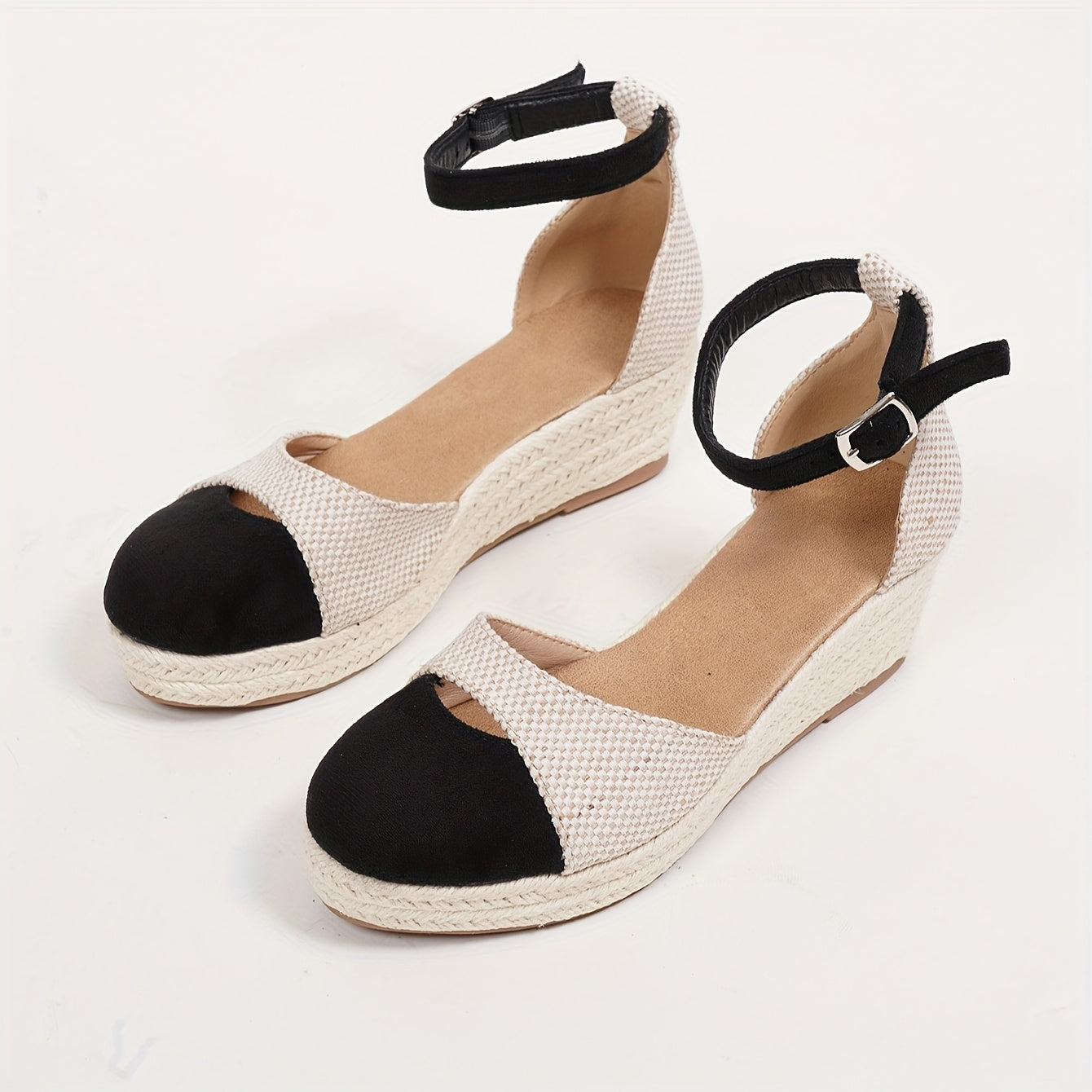 Modne sandały na koturnie w biało-czarnym wzorze łączą komfort i elegancję w codziennym stylu. Pasek w kostce dodaje stabilności, a okrągły nosek podkreśla ich lekki charakter. Tkany wierzch i podeszwa TPR zapewniają trwałość i wygodę użytkowania. Idealne do casualowych i preppy stylizacji.
