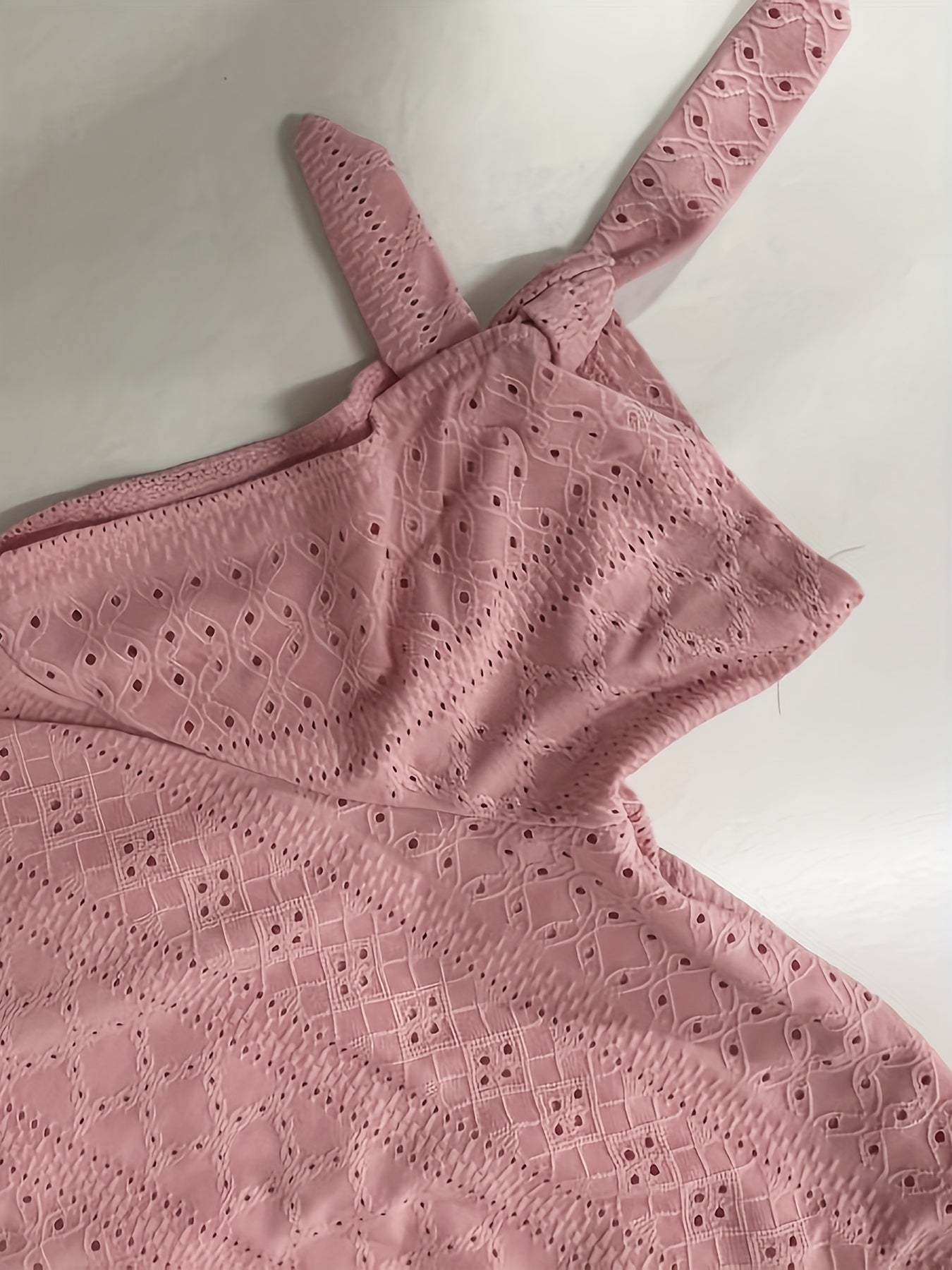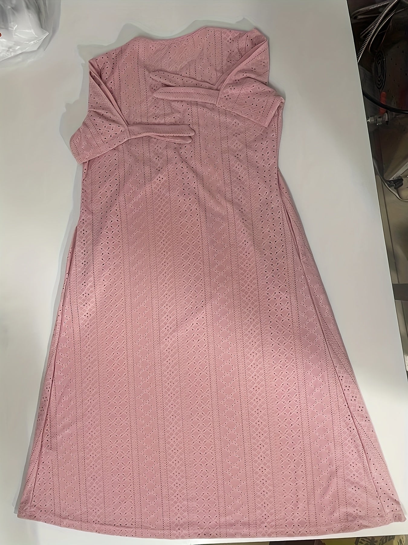 Lekka dzianina zapewnia komfort w upalne dni, tworząc modną i funkcjonalną sukienkę wakacyjną.