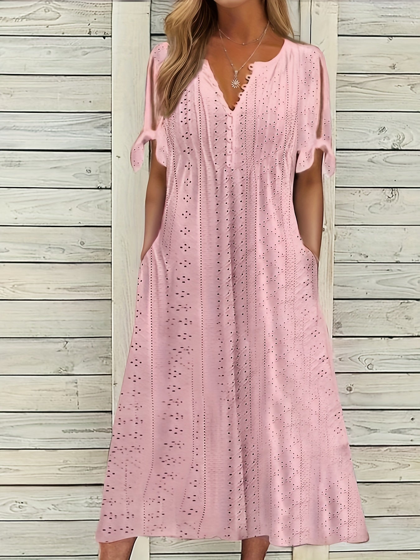 Sukienka Wioletta to casualowa propozycja midi z wycięciami i plisowanym krojem. Dekolt w serek i luźny fason nadają jej lekkości, doskonałej na codzienne letnie stylizacje.