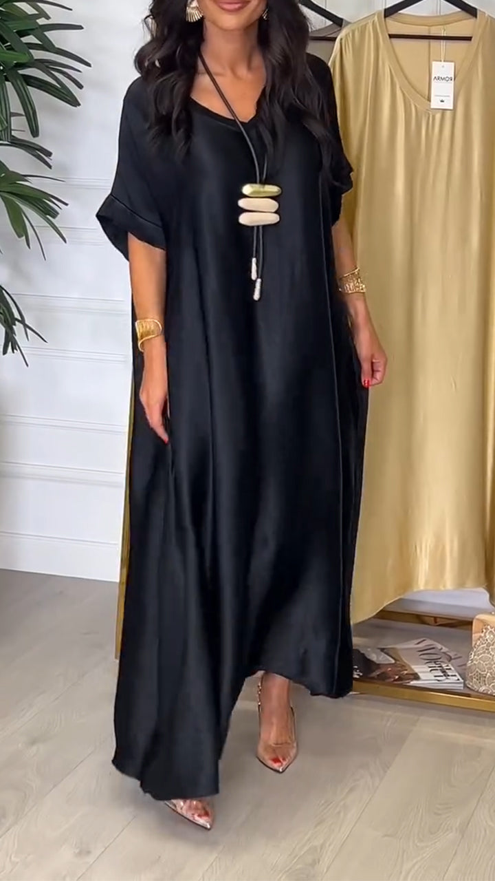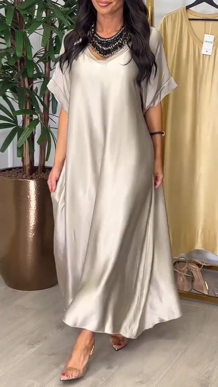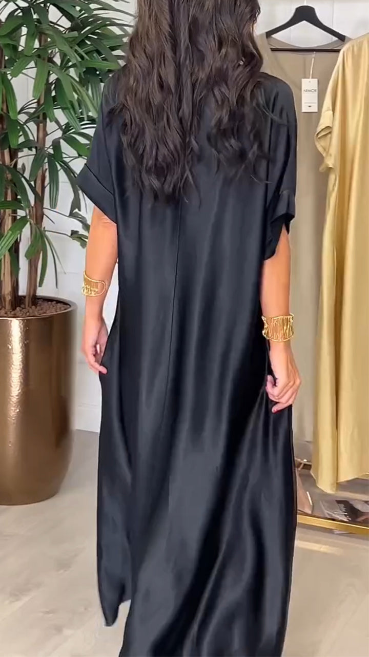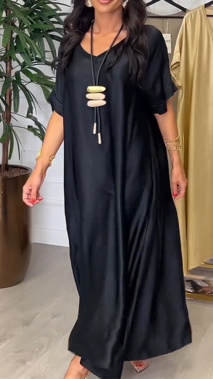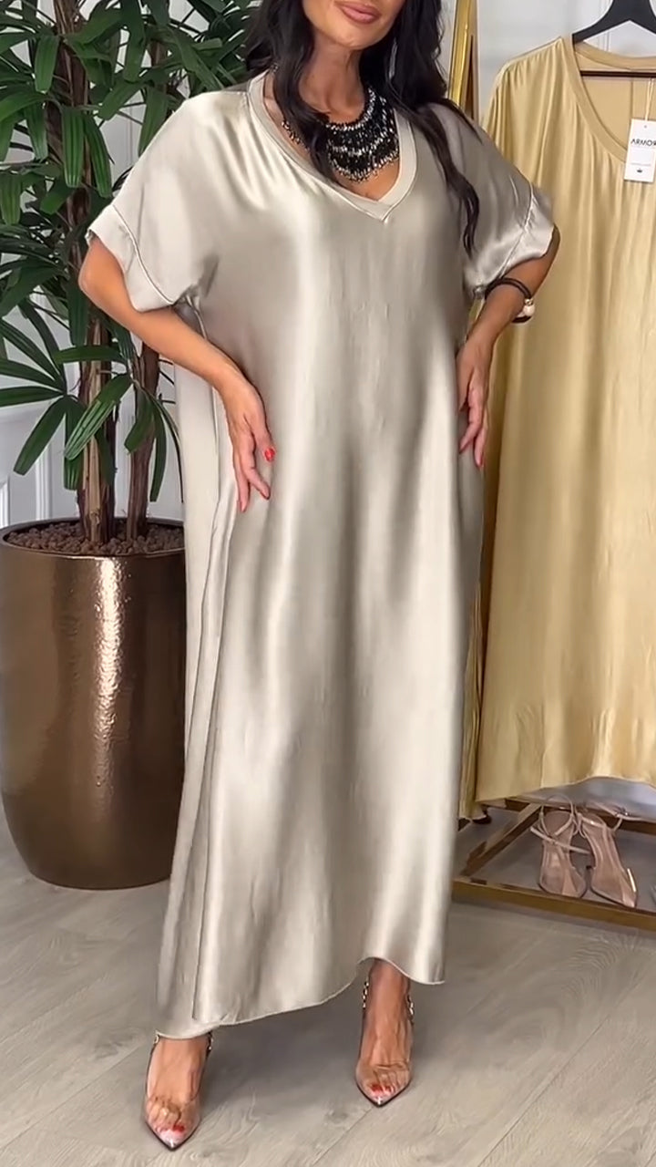 / Damska sukienka na co dzień z dekoltem w serek i rozcięciem