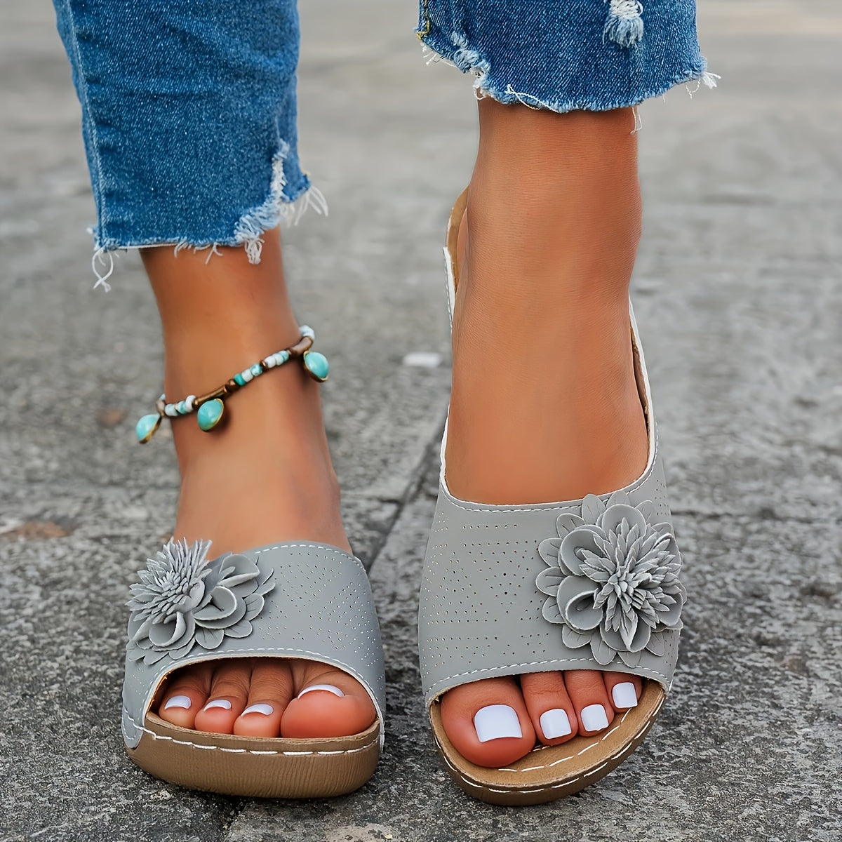 Florinda to wygodne białe klapki z delikatnym kwiatowym akcentem, idealne na lato. Płaska konstrukcja pozwala na komfortowy chód, a odkryte palce zapewniają przewiewność. Ich minimalistyczny krój sprawdzi się zarówno na co dzień, jak i na wyjazd. Elegancja i prostota w jednym modelu.