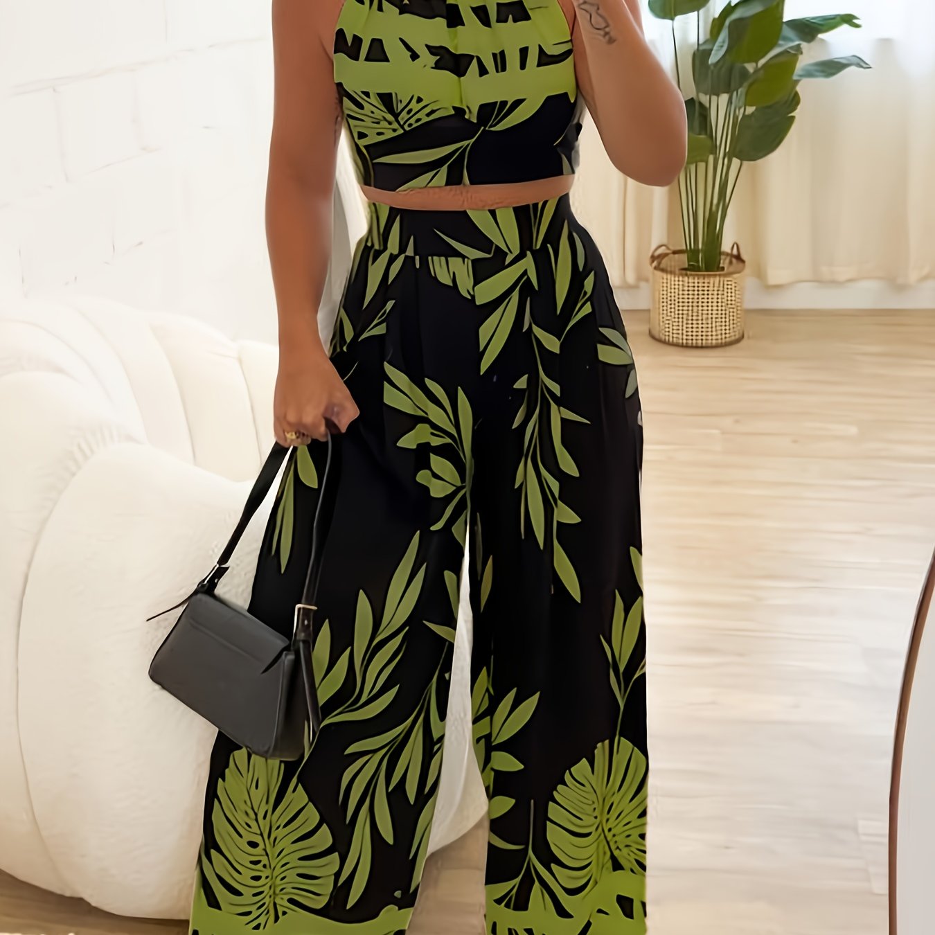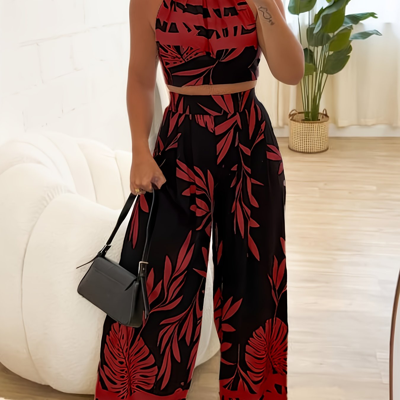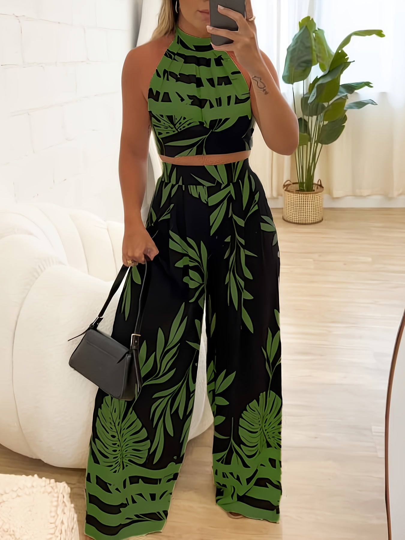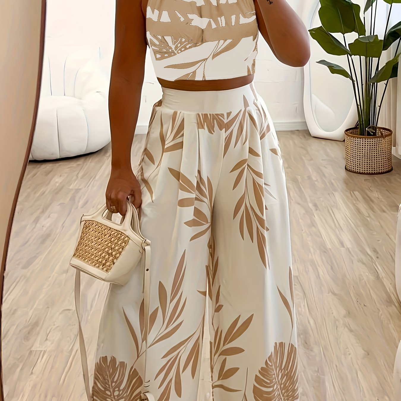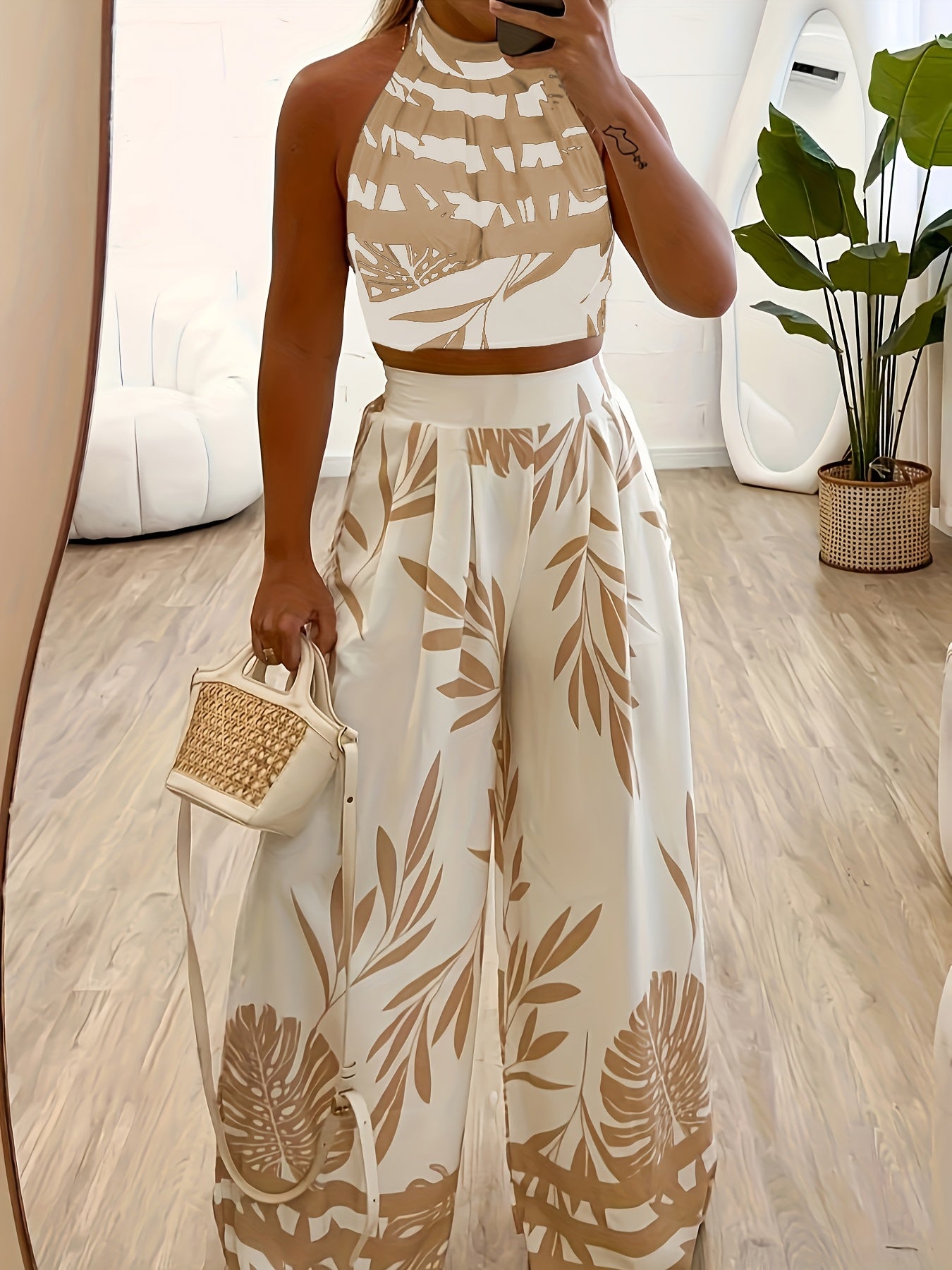 Zestaw Zofia łączy top wiązany na szyi z luźnymi spodniami o nadruku na całej powierzchni. To propozycja pełna swobody, idealna na spacery i letnie wyjazdy. Luźny krój pozwala na komfortowe noszenie w upalne dni.